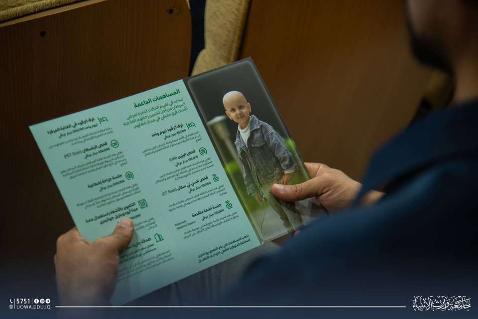 أقامت جامعة وارث الأنبياء، بالتعاون مع صندوق وارث التابع لـ مؤسسة وارث الدولية لعلاج الأورام، ورشة تعريفية استعرضت آلية عمل الصندوق والخدمات التي يقدمها في توفير العلاج المجاني للأطفال المصابين بالسرطان حتى عمر 15 عامًا.