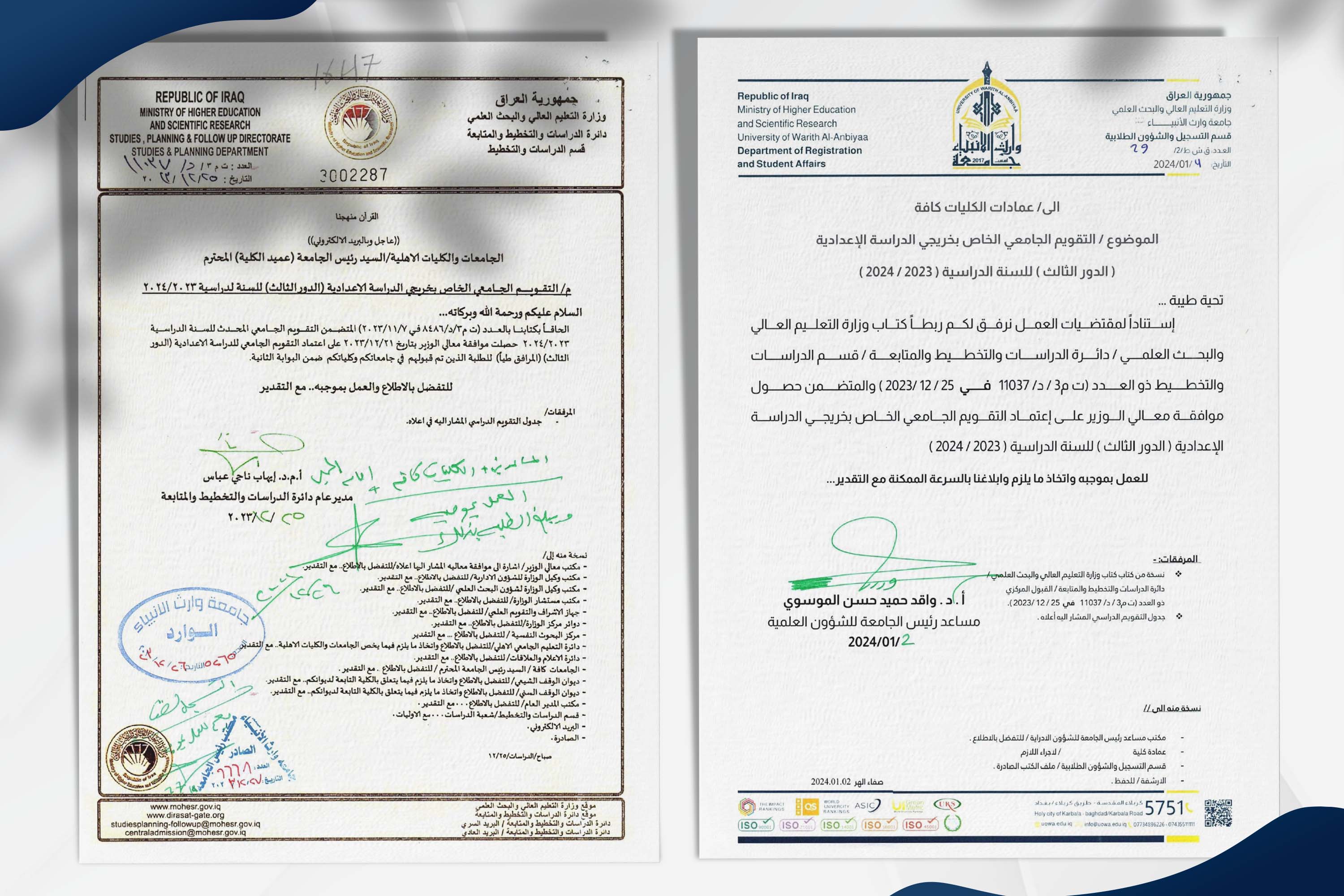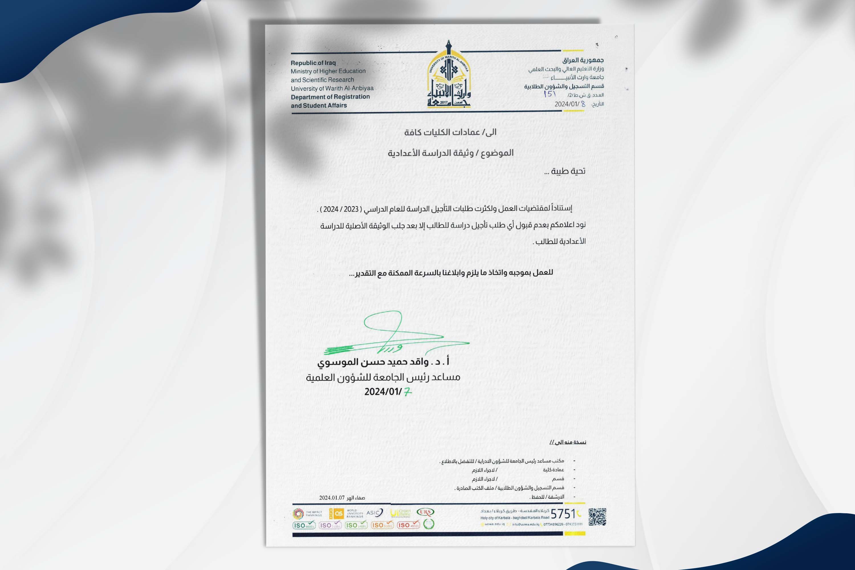 الرجوع الى مكتب العمادة من أجل ختم وتوقيع التأييد.