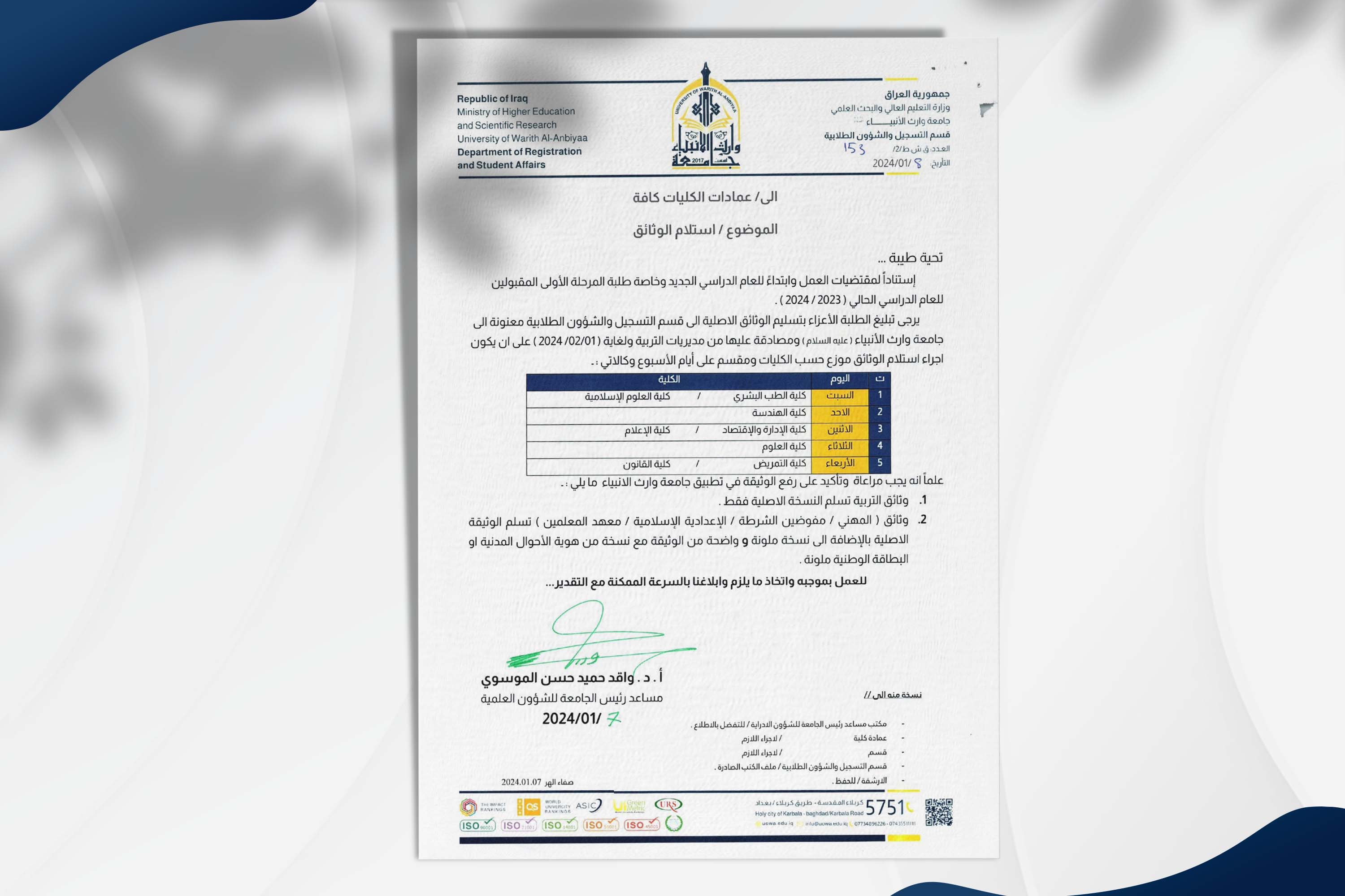 يراجع الطالبـ/ة مكتب عميد الكلية لاستلام نموذج التأييد.