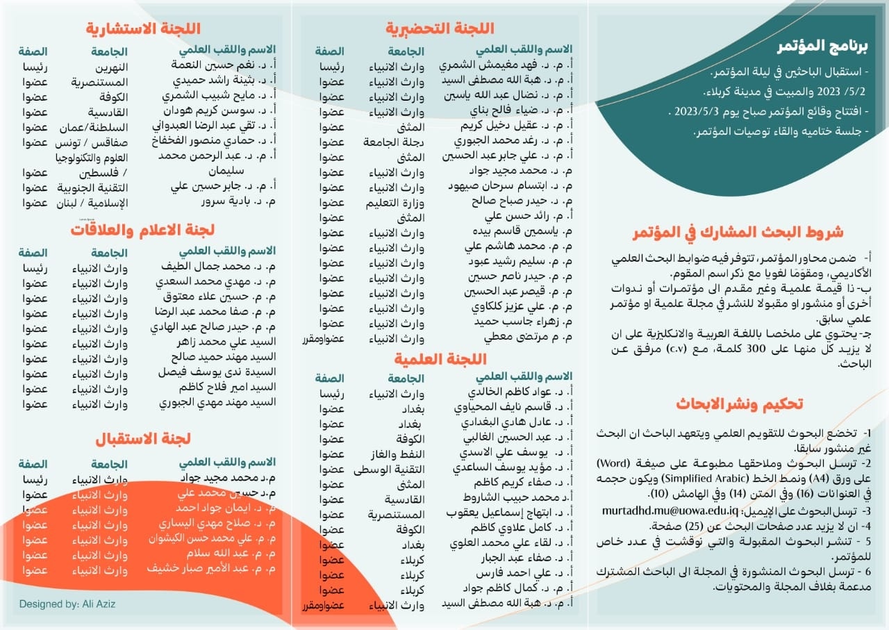 برعاية السيد رئيس الجامعة الاستاذ الدكتور ابراهيم الحياوي، أقامت كلية الإدارة والاقتصاد في جامعة وارث الانبياء(عليه السلام) "المؤتمر العلمي الاول"