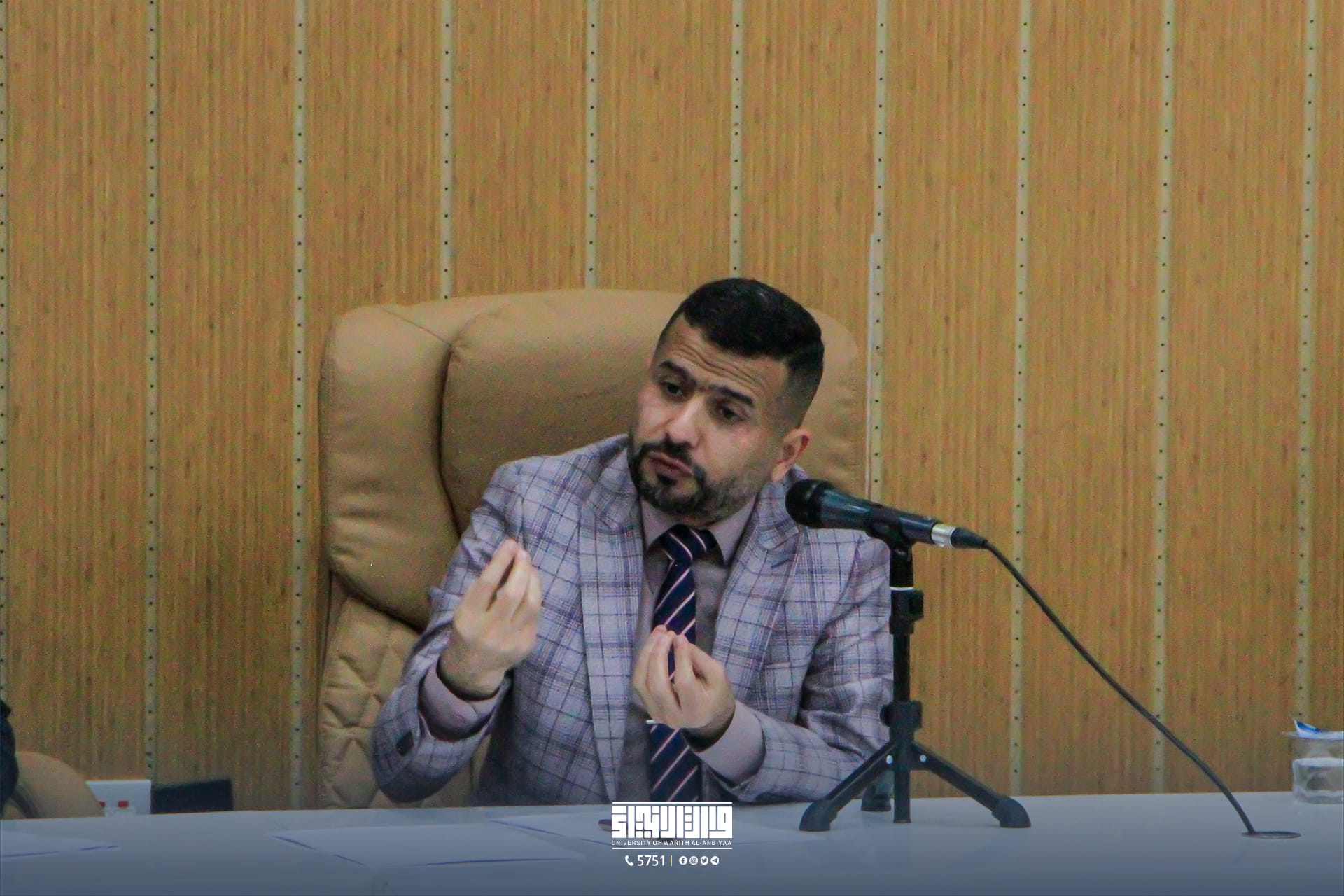 بحضور عميد كلية الإدارة والاقتصاد، الدكتور عواد الخالدي، وعدد من أعضاء هيئة التدريس، نظم قسم إدارة الأعمال في الكلية ندوة علمية بعنوان "المهارات المطلوبة لسوق العمل"، قدمها السيد أزهر الركابي.