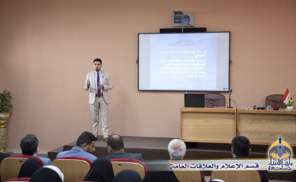 بالتعاون بين قسم النشاطات الطلابية في جامعة وارث الانبياء (عليه السلام) ومؤسسة الامام الرضا (عليه السلام) الخيرية وبالتنسيق مع مديرية الامن الوطني في كربلاء وبحضور الاستاذ الدكتور طالب حسن موسى رئيس الجامعة والسيد المساعد العلمي  اقيمت يوم الاربعاء 24/4/2019  ندوة تثقيفية حول جريمة الابتزاز الالكتروني التي انتشرت وبشكلاً كبير في الاونة الاخيرة