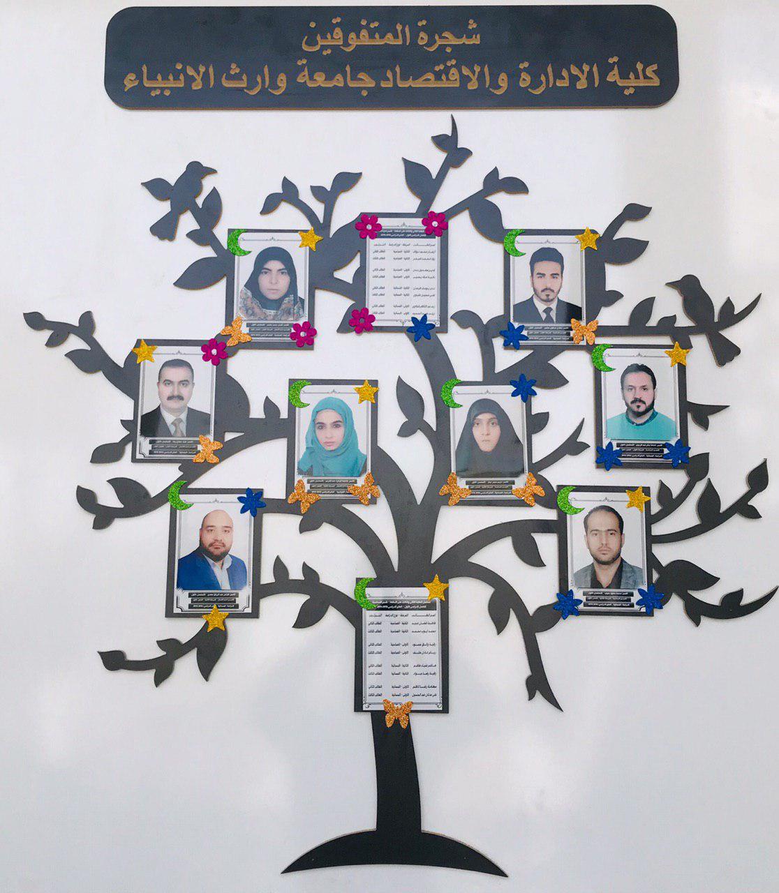 تكريم الطلبة المتفوقين برفع صورهم على شجرة المتفوقين داخل حرم الكلية من قبل عمادة كلية الادارة والاقتصاد