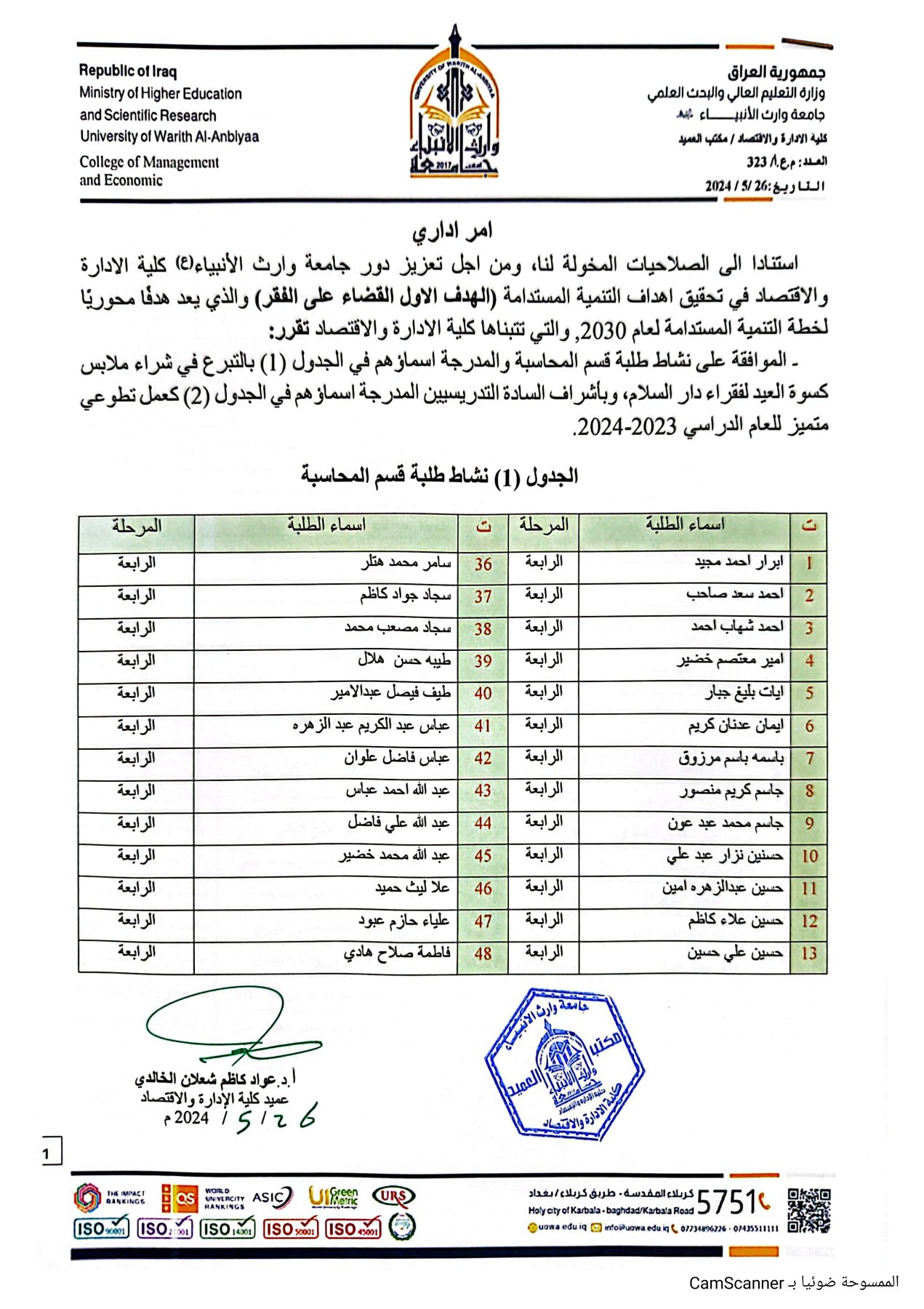 جامعة عراقية معترف بها من قبل وزارة التعليم العالي والبحث العلمي العراقي بموجب الامر الوزاري المرقم ( ت.أ / ك 4727 في سنة 2017)