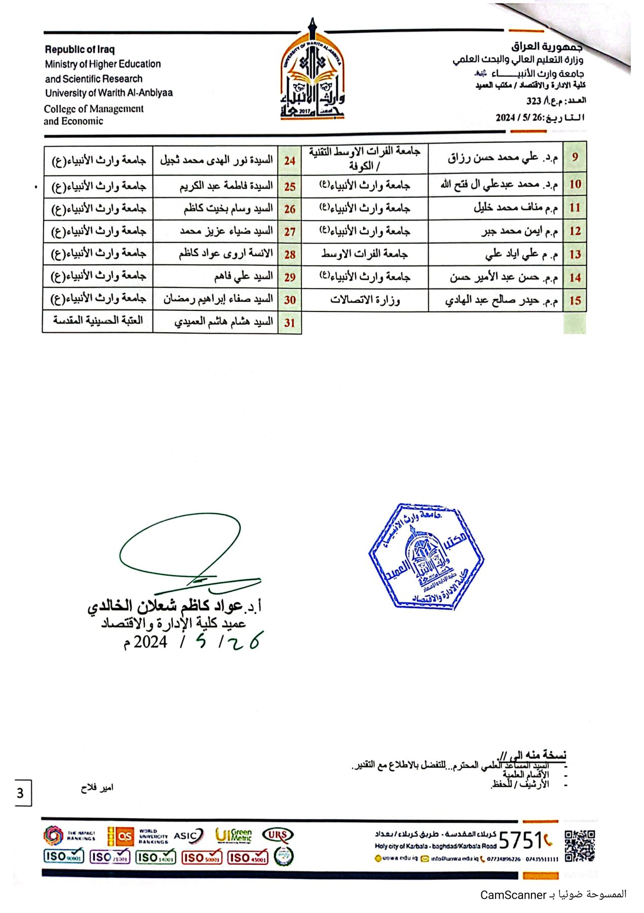 عنوان الجامعة العراق - كربلاء المقدسة / طريق بغداد - كربلاء