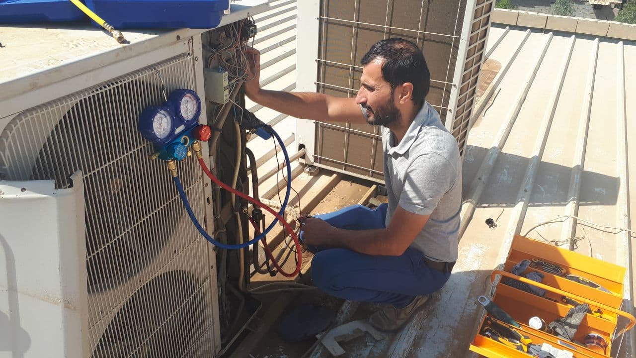 قسم هندسة تقنيات التكييف و التبريد يجري صيانة لمنظومات تكييف ورشه الهندسية