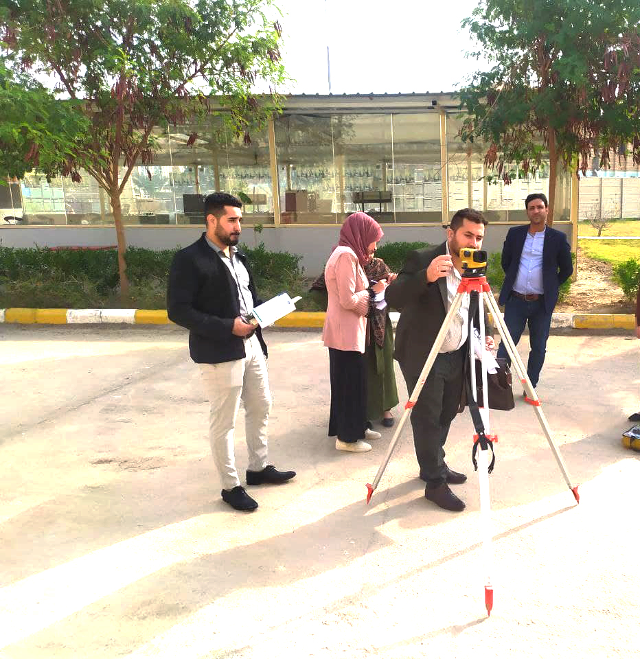 الجزء العملي تضمن المسوحات الأولية للمواقع وطرق توزيع أماكن الجهاز وبحسب الإمكانيات المتوفرة في الجهاز و مقارنه نتائج المسوحات بالأجهزة التقليدية مع النتائج التي تم الحصول عليها من جهاز اللفل. حيث ان الدورة استهدفت الكادر التدريسي والهندسي في الكلية.