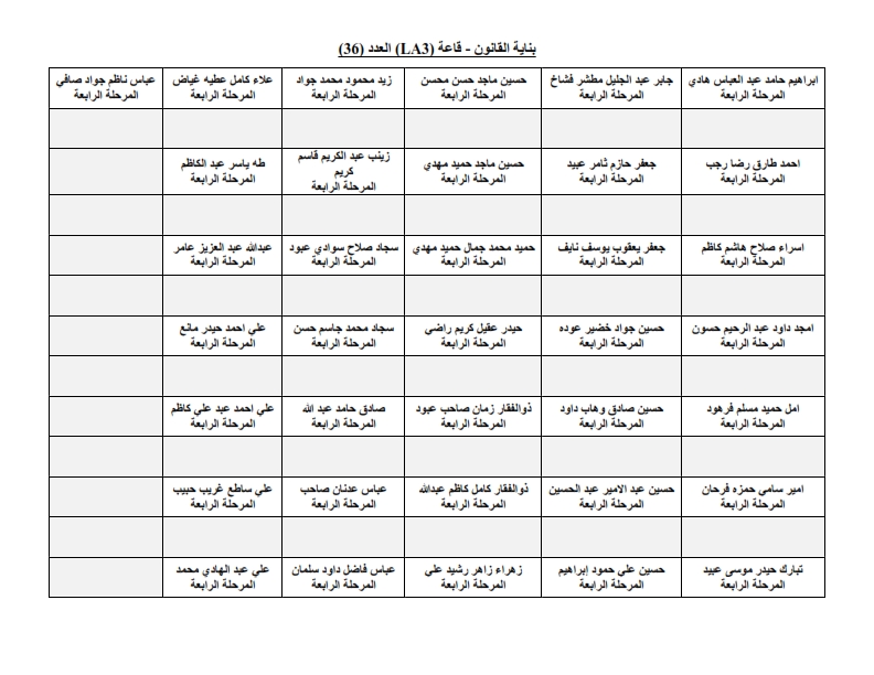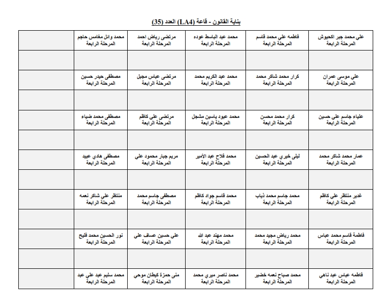 خارطة جلوس طلبة قسم الهندسة المدنية - المرحلة الرابعة
