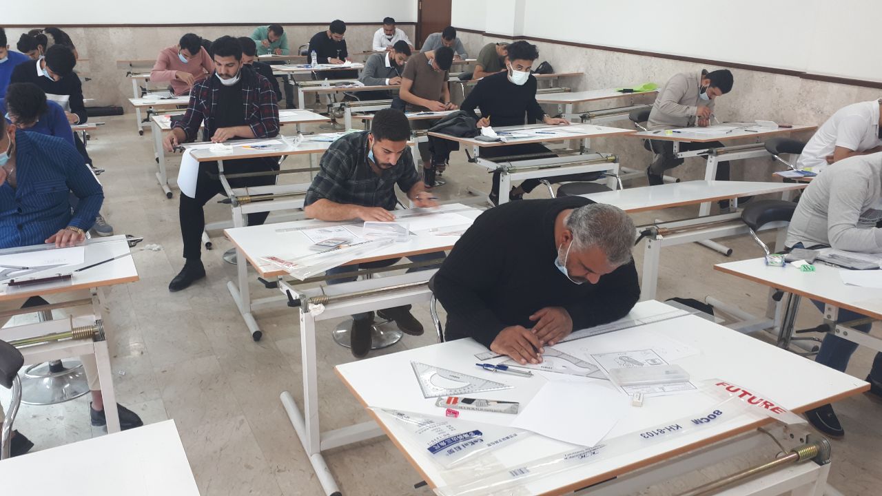 جانب من الامتحانات الحضورية لقسم هندسة تقنيات التكييف والتبريد لماده الرسم الهندسي المرحلة الاولى