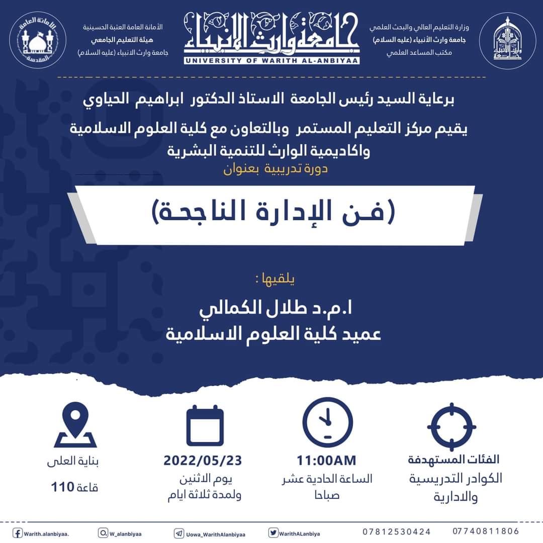 شارك مجموعة من أساتذة كلية العلوم الإسلامية في جامعة وارث الانبياء في أعمال المؤتمر العلمي الدولي الخامس والذي كان تحت عنوان التراث المعرفي عند شريف العلماء والذي أقامه مركز  احياء التراث الثقافي والديني التابع لقسم الشؤون الفكرية والثقافية في العتبة الحسينية المقدسة بالتعاون مع مجموعة من الكليات والجامعات الحكومية والأهلية ومن ضمنها كلية العلوم الإسلامية في جامعة وارث الانبياء.