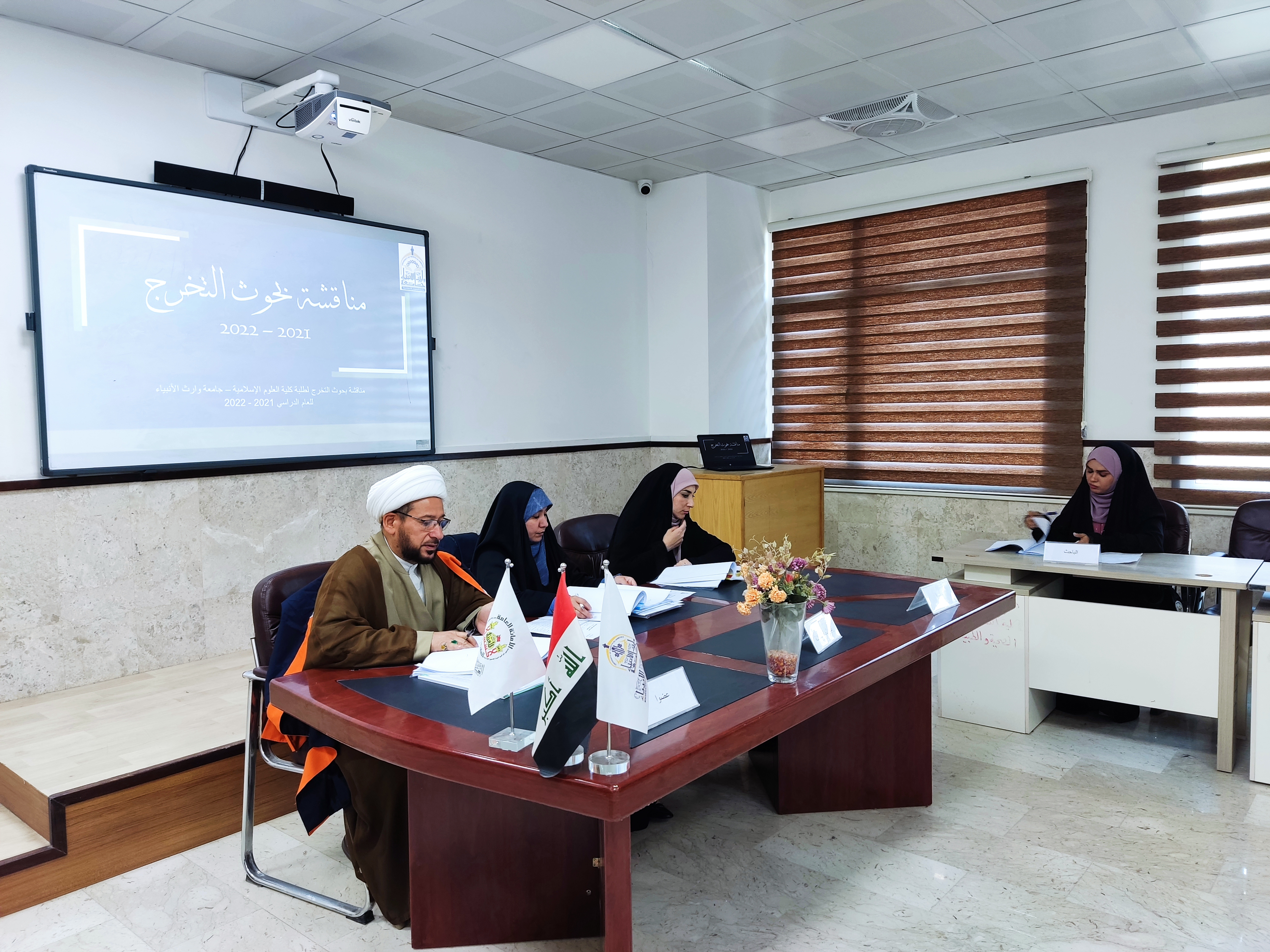 شرعت كلية العلوم الإسلامية في جامعة وارث الانبياء المباشرة في مناقشة بحوث التخرج لطلبة المرحلة الرابعة لقسمي علوم القران الكريم والفقه وأصوله للعام الدراسي 2022 .