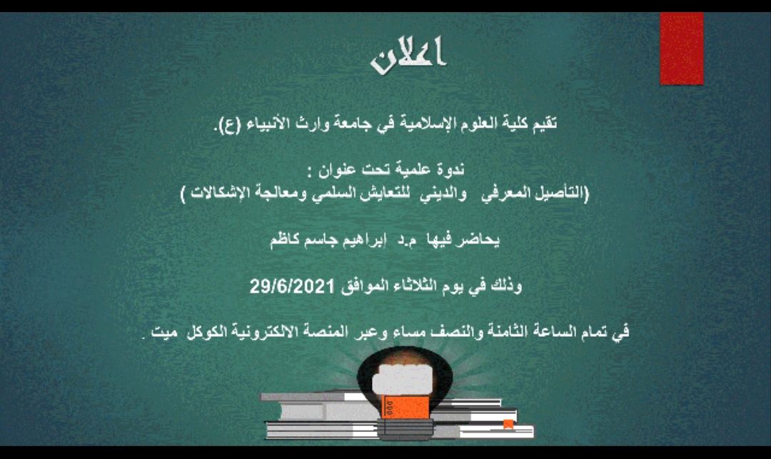 جانب من استمرار المحاضرات العلمية المنهجية لطلبة كلية العلوم الاسلامية في جامعة وارث الانبياء عبر تطبيق الكوكل ميت ومتابعة حثيثة من عمادة الكلية ورئيسي القسمين في الكلية حول سير العملية التعليمة في الكلية للفصل الدراسي الثاني , فضلا عن استمرار الانشطة الثقافية والتطويرية لطلبة كلية العلوم الاسلامية , وقد لاقت البرامج التنموية والثقافية التي تقدمها كلية العلوم الاسلامية لطلبتها الاعزاء قبولا واسعا من قبل الطلبة متمنين المزيد من هكذا برامج تنمي مواهب الطلبة وتصقل ثقافتهم الاسلامية.