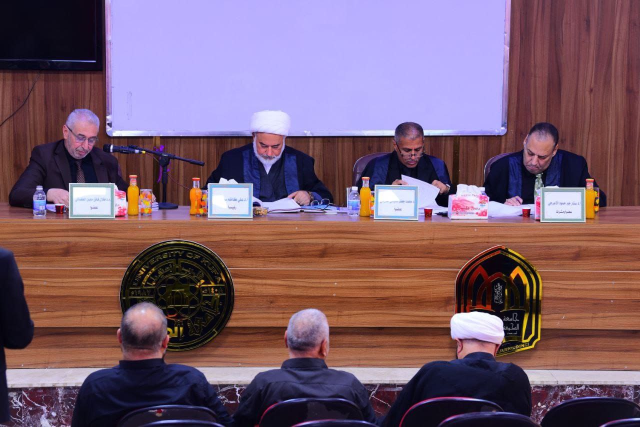مشاركة السيد العميد كعضو لجنة مناقشة رسالة ماجستير في كلية الفقه في جامعة الكوفة