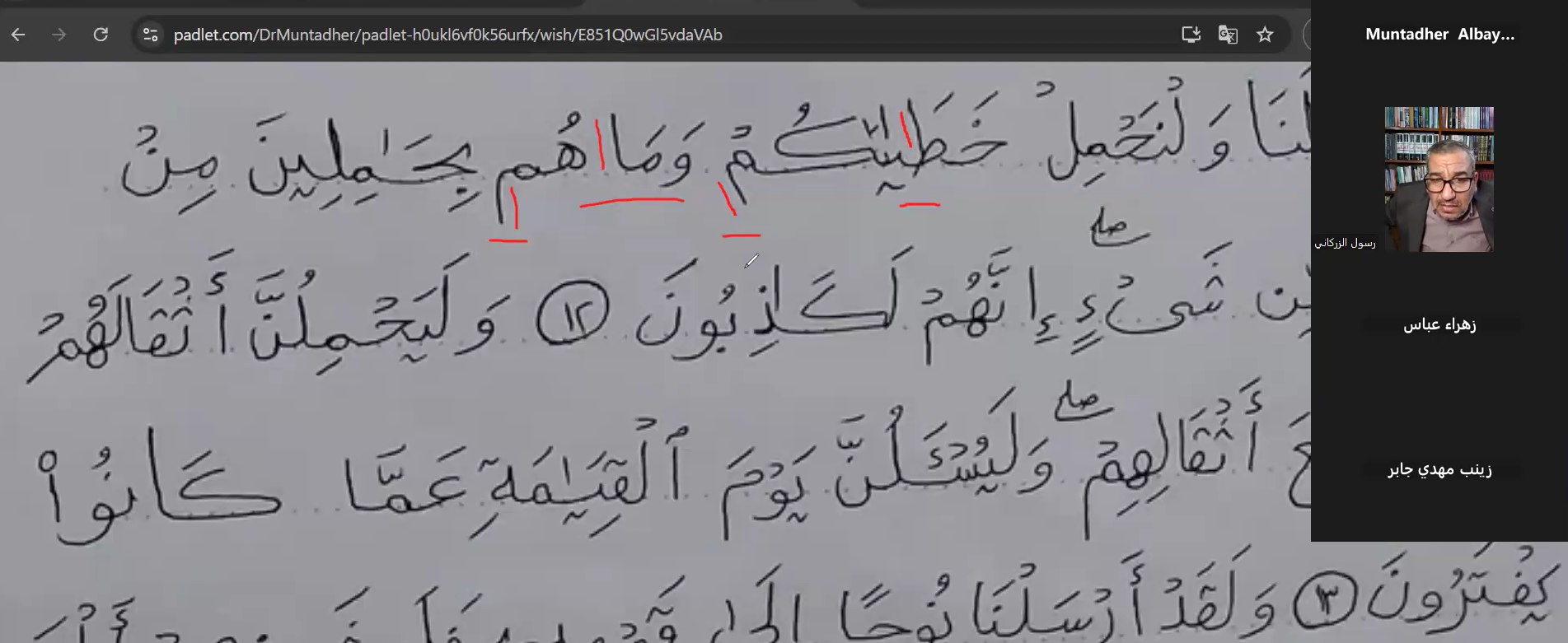 في إطار مشروع كتابة القرآن الكريم "كلمات من النور"، أقامت كلية العلوم الإسلامية في جامعة وارث الأنبياء الورشة الثالثة يوم السبت الموافق 25/1/2025، الساعة العاشرة صباحاً، عبر منصة Zoom، بحضور الخطاط الدكتور رسول الزركاني، رئيس جمعية الخطاطين في بابل.
