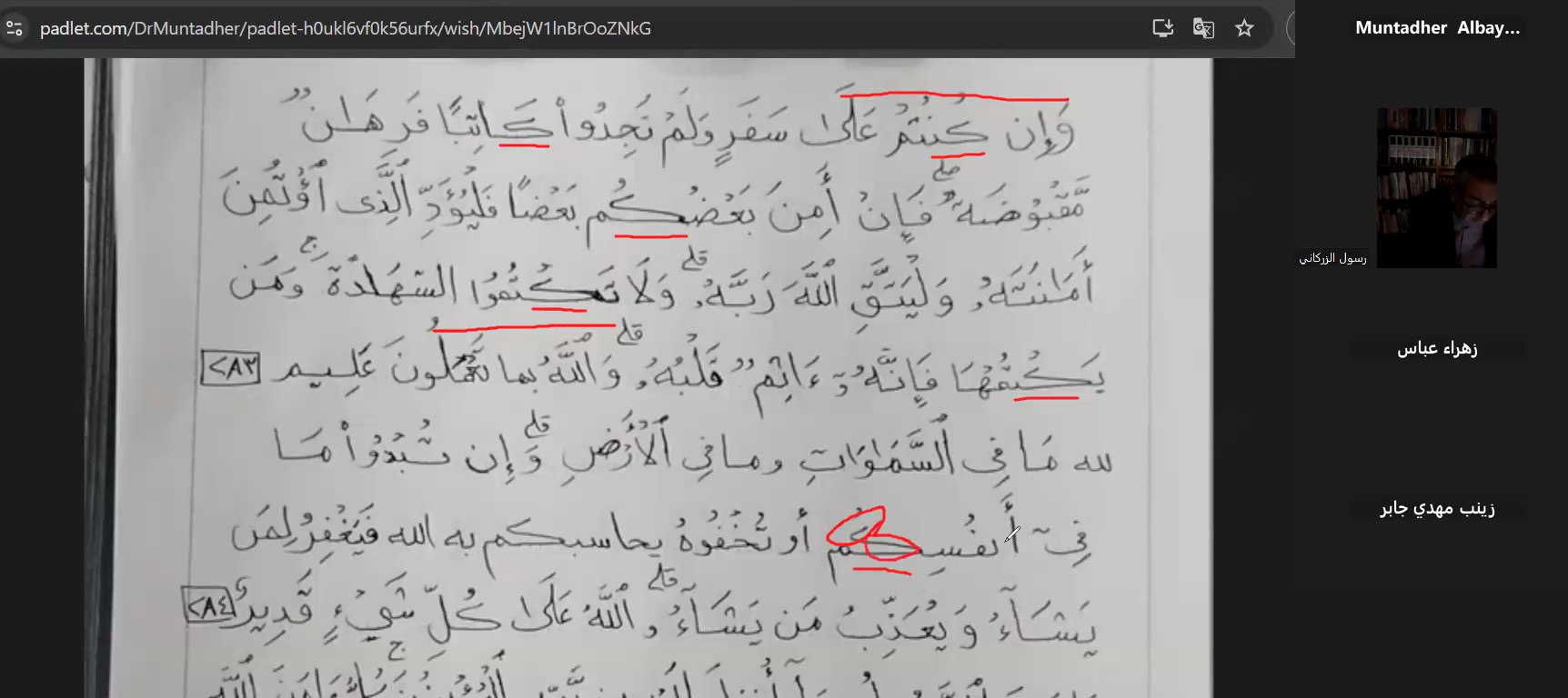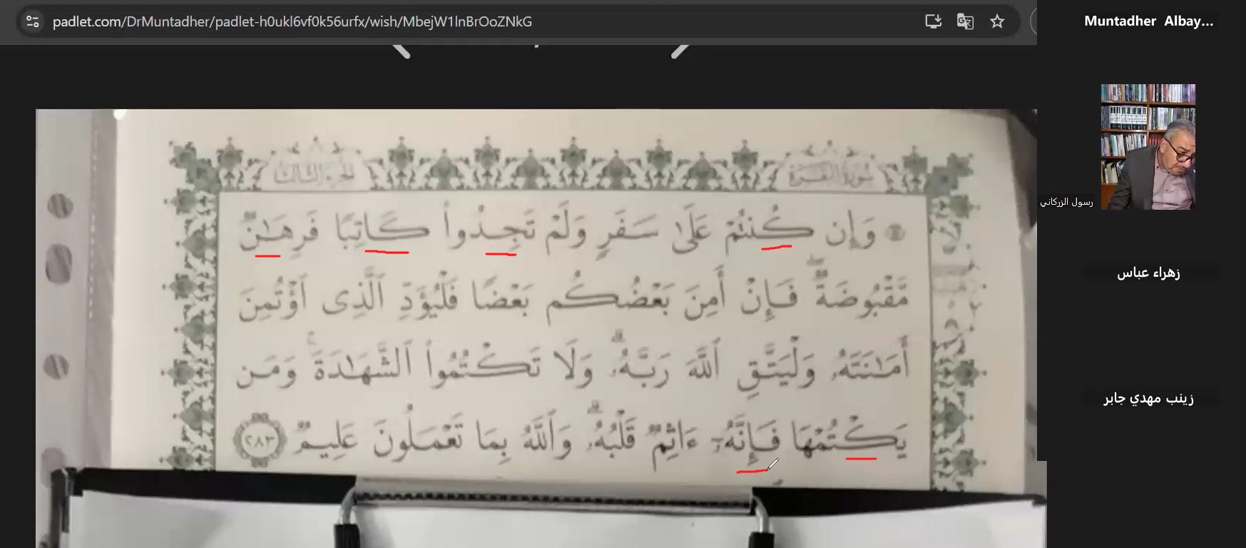 كلية العلوم الإسلامية تقيم الورشة الثالثة لمشروع "كلمات من النور" لتصحيح التمارين ومراجعة الأداء عبر الإنترنت