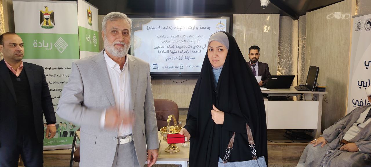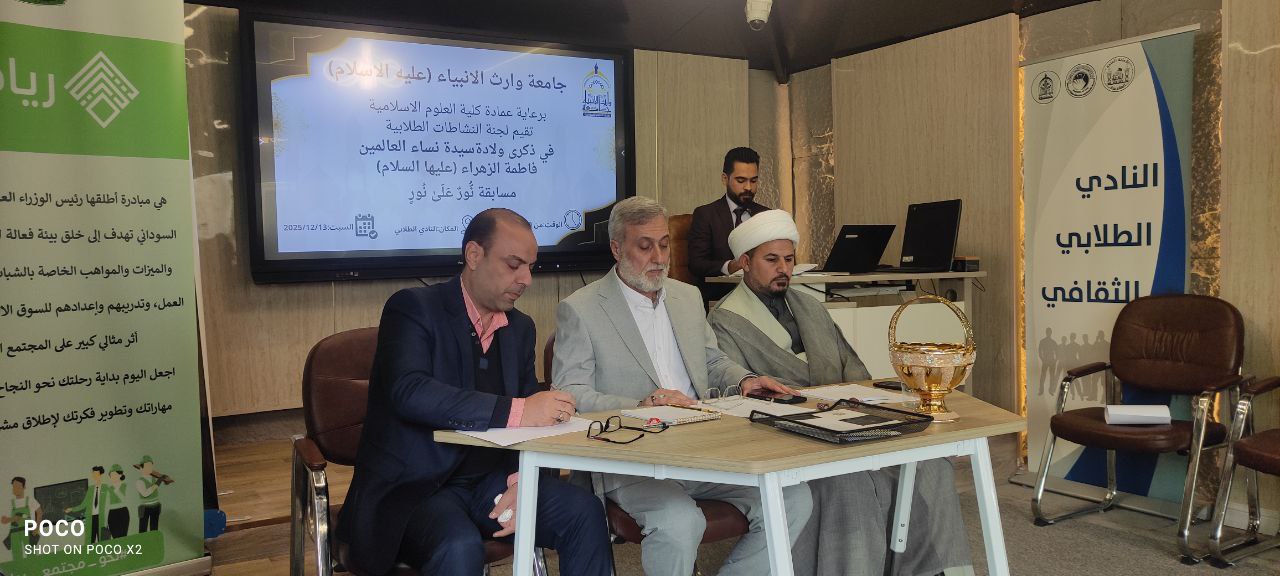 تحت رعاية كريمة من السيد عميد كلية العلوم الإسلامية المحترم، وبإشراف وتنظيم عالٍ من لجنة النشاطات الطلابية، أُقيمت مسابقة «نورٌ على نور» بمناسبة ذكرى ولادة سيدة نساء العالمين السيدة فاطمة الزهراء (عليها السلام)، وذلك في النادي الثقافي الطلابي.