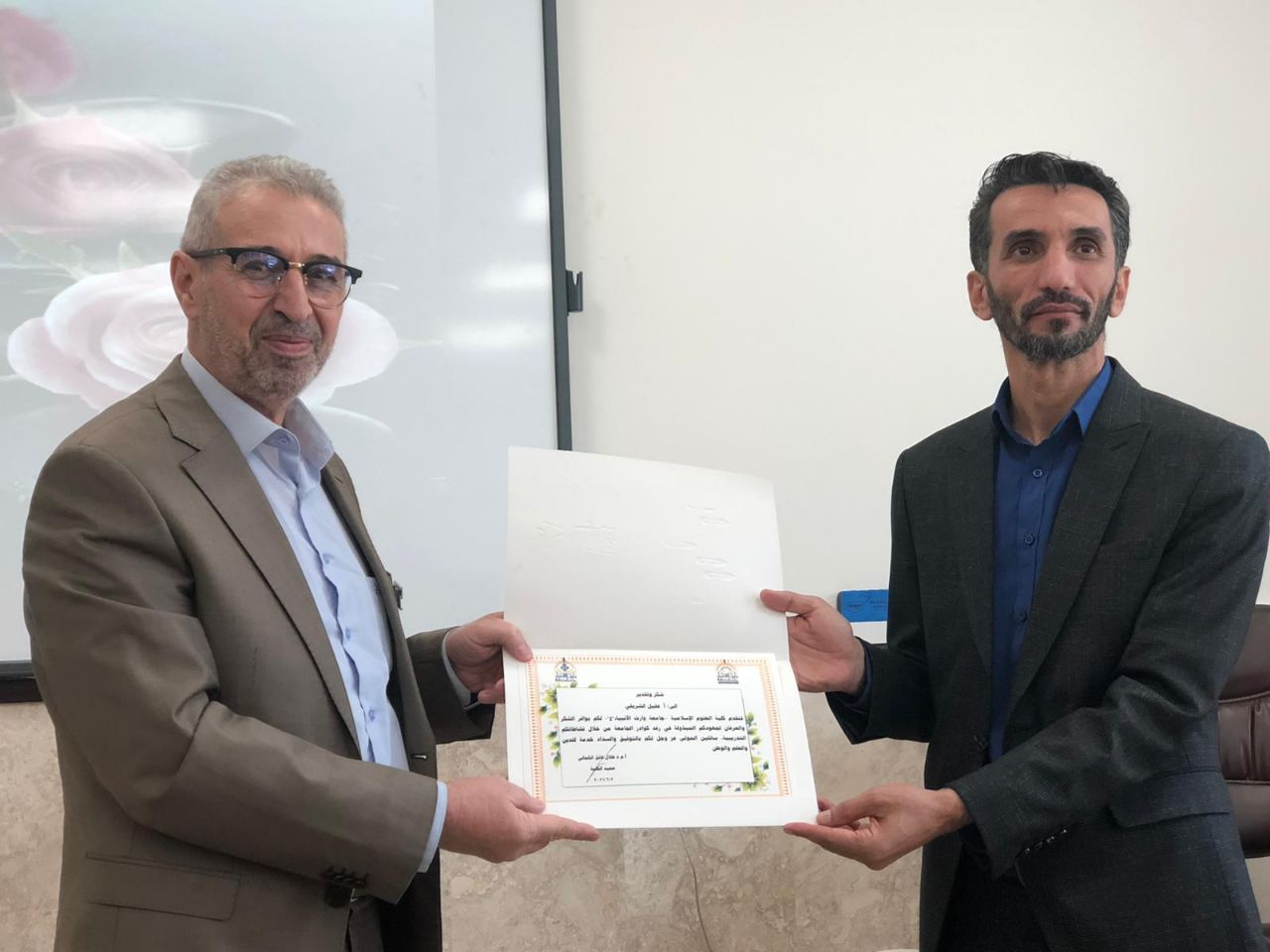 وفي نهاية الوحدة التدريبية قدم عميد كلية العلوم الإسلامية الدكتور طلال فائق الكمالي كتب شكر وتقدير للقائمين والمساهمين في الدورة تثمينا لجهودهم المبذولة