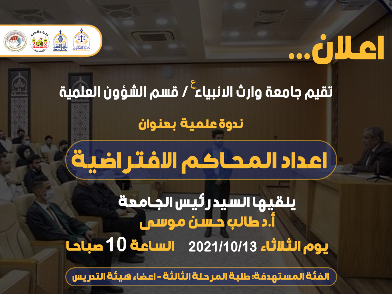 ندوة العلمية بعنوان(اعداد المحاكمة الافتراضية)