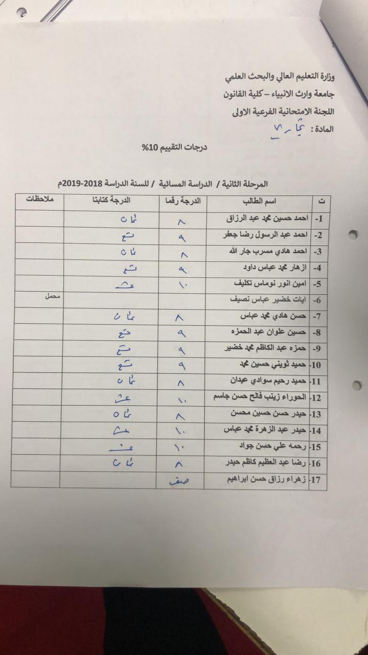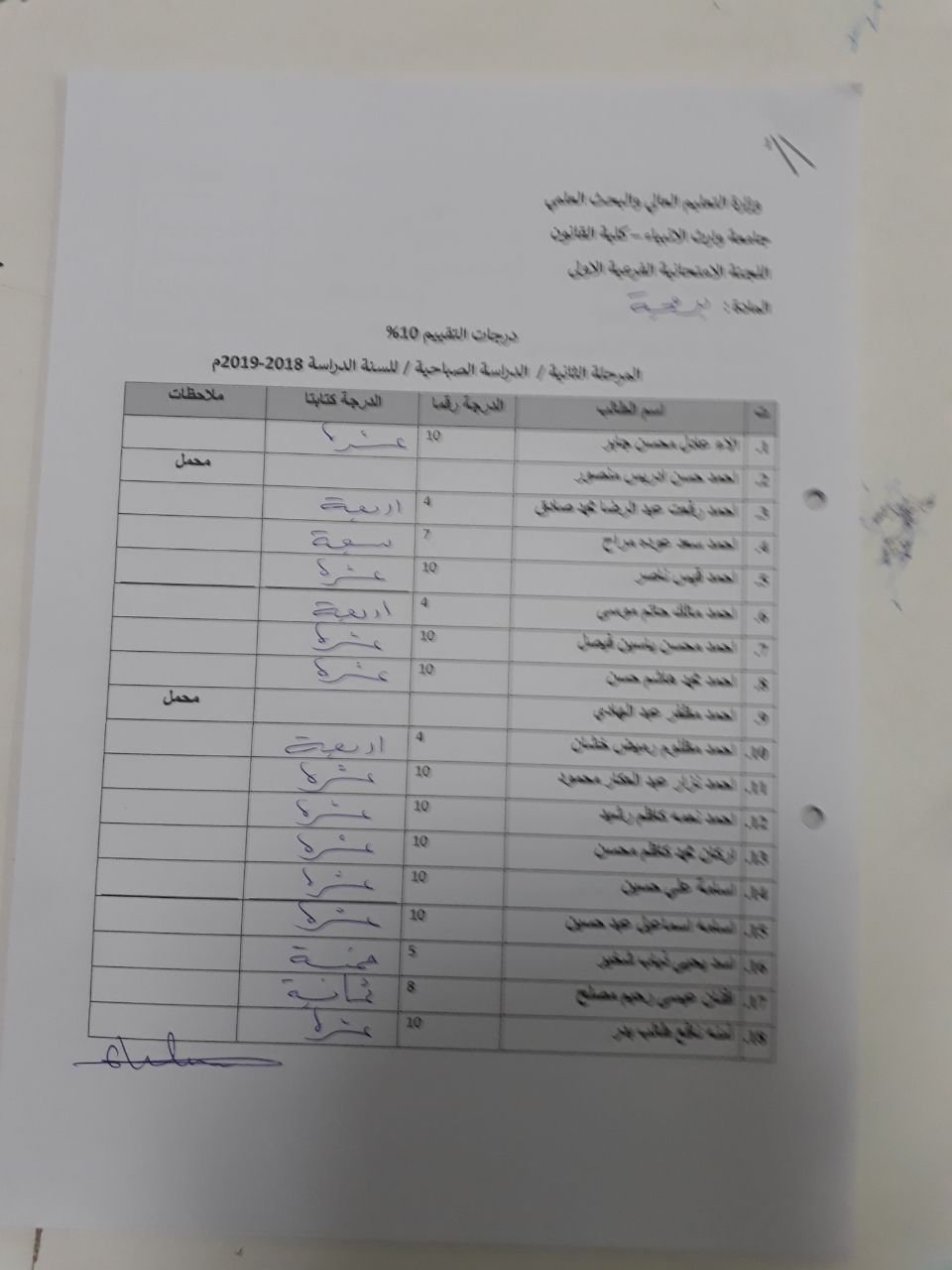 إجراء الامتحان المشترك لتعزيز الرصانة العلمية في قسم العلوم المالية والمصرفية الاسلامي كلية العلوم الاسلامية