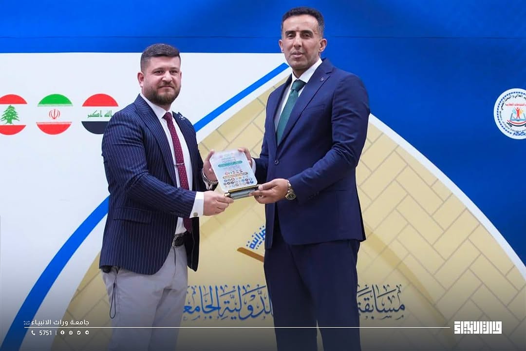 تكريم طالب من كلية الطب في جامعة وارث الأنبياء (عليه السلام) بجائزة في مسابقة النور القرآنية الدولية الجامعية