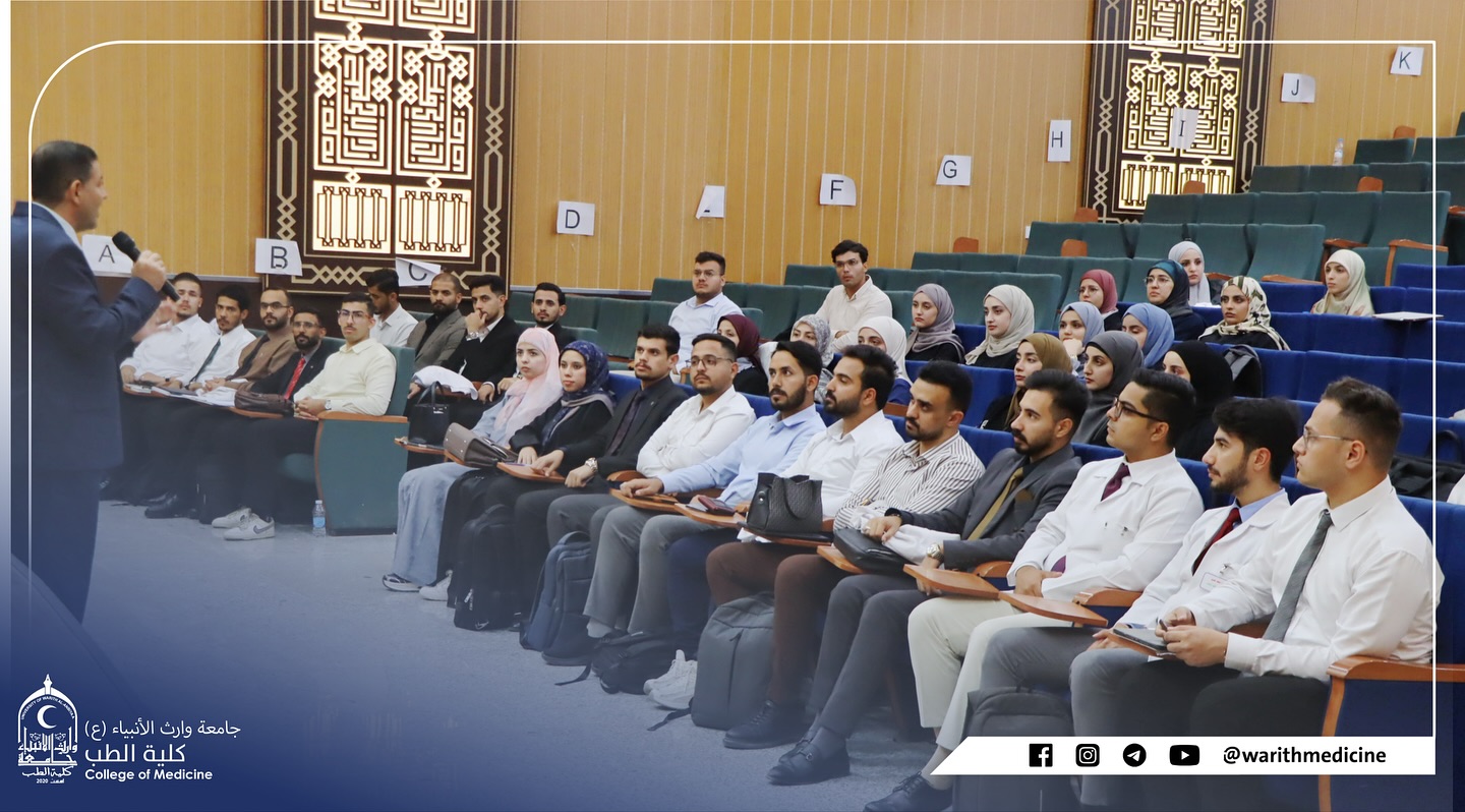 في رحاب جامعة وارث الأنبياء عليه السلام وتحت رعاية العتبة الحسينية المقدسة تفتخر كلية الطب بالكلمات السامية التي تفضل بها المتولي الشرعي للعتبة الحسينية المقدسة سماحة الشيخ عبد المهدي الكربلائي (دام عزه)