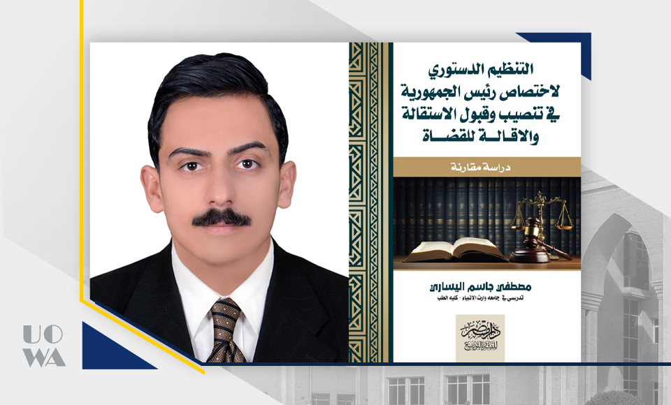 يسر عمادة كلية الطب أن تبارك للتدريسي م.م. مصطفى جاسم لنشر احد مؤلفاته تحت عنوان التنظيم الدستوري لاختصاص رئيس الجمهورية في تنصيب وقبول الاستقالة والاقالة للقضاةهذا الإنجاز العلمي يضيف إسهاماً قيماً للمكتبة القانونية، ويعكس جهوده البحثية المتميزة. نتمنى له دوام التوفيق في مسيرته الأكاديمية.