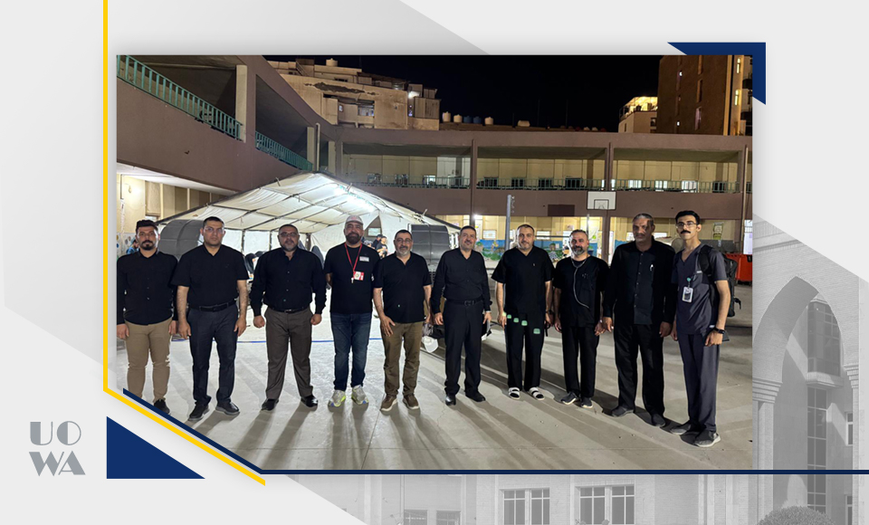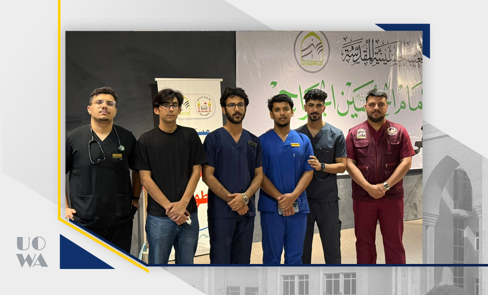 في إطار الدور الإنساني والخدمي لجامعة وارث الأنبياء (عليه السلام) خلال زيارة الأربعين شارك عدد من طلبة كلية الطب في تقديم الخدمات الطبية والعلاجية ضمن الكوادر الطبية في مفارز مستشفى سفير الامام الحسين عليه السلام