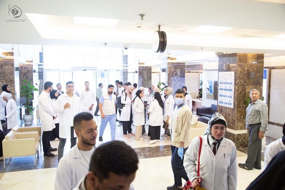 باشراف ومتابعة عمادة كلية الطب مدير التعليم الطبي الدكتور احمد عبد مسلم مع طلبة المرحلة الاولى في سفرة علمية الى مستشفى الامام الحجة عجّل الله فرجه