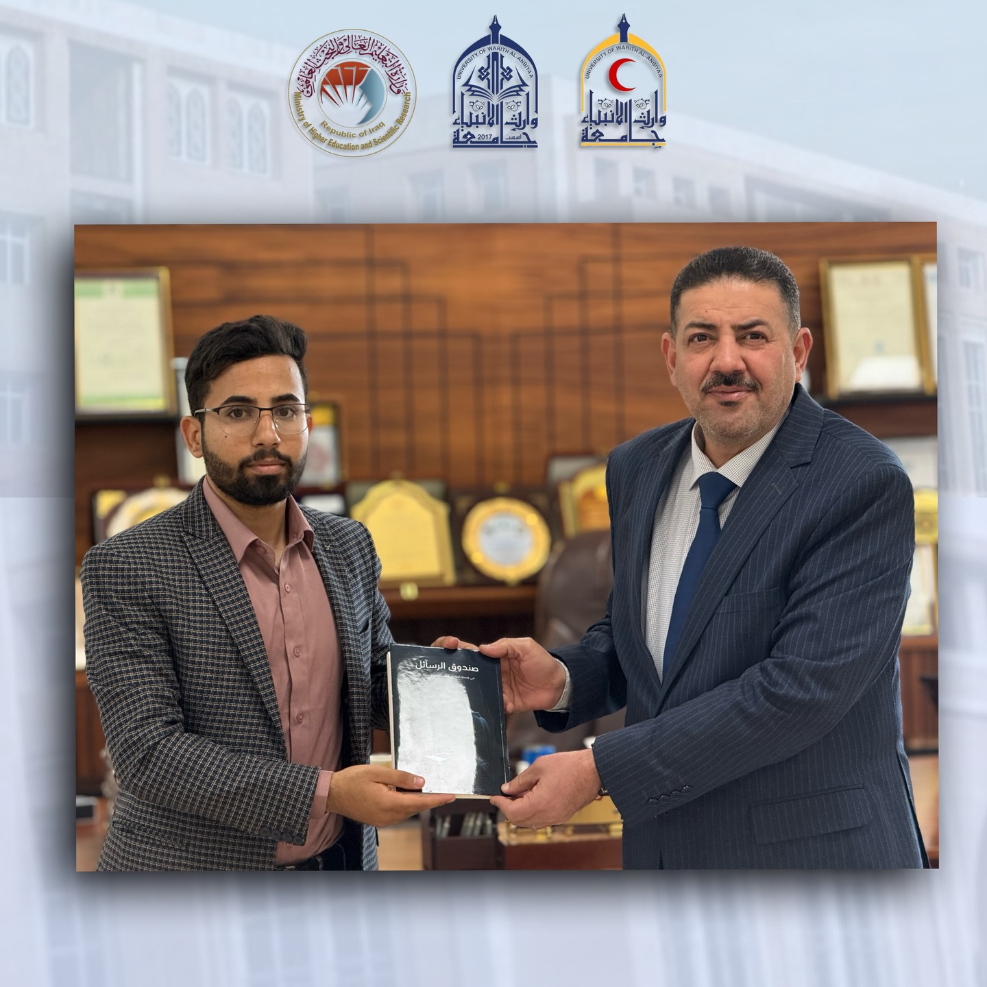 أعرب عميد كلية الطب الأستاذ الدكتور علي عبد سعدون الغزي عن تهانيه للطالب حمزة ثجيل مخيف بمناسبة تأليف كتابه الجديد مشيدًا بجهوده العلمية ومثابرته ومعربًا عن فخر الكلية بما يقدمه طلبتها من إنجازات متميزة في مجالات البحث والمعرفة الطبية ومشجعًا الجميع على السعي نحو التميز والإبداع العلمي.