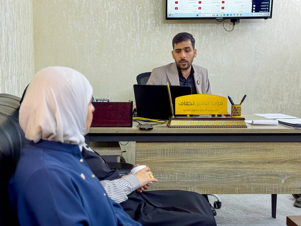 استقبل الأستاذ الدكتور واقد الموسوي، المساعد العلمي لرئيس جامعة وارث الأنبياء (عليه السلام)، والسيد مؤيد سمير الخفاف، رئيس قسم التسجيل والشؤون الطلابية، لجنةً من وزارة التعليم العالي والبحث العلمي، وذلك ضمن زيارة ميدانية تهدف إلى متابعة وتقييم مدى تنفيذ الجامعة لمبادرة "ادرس في العراق".