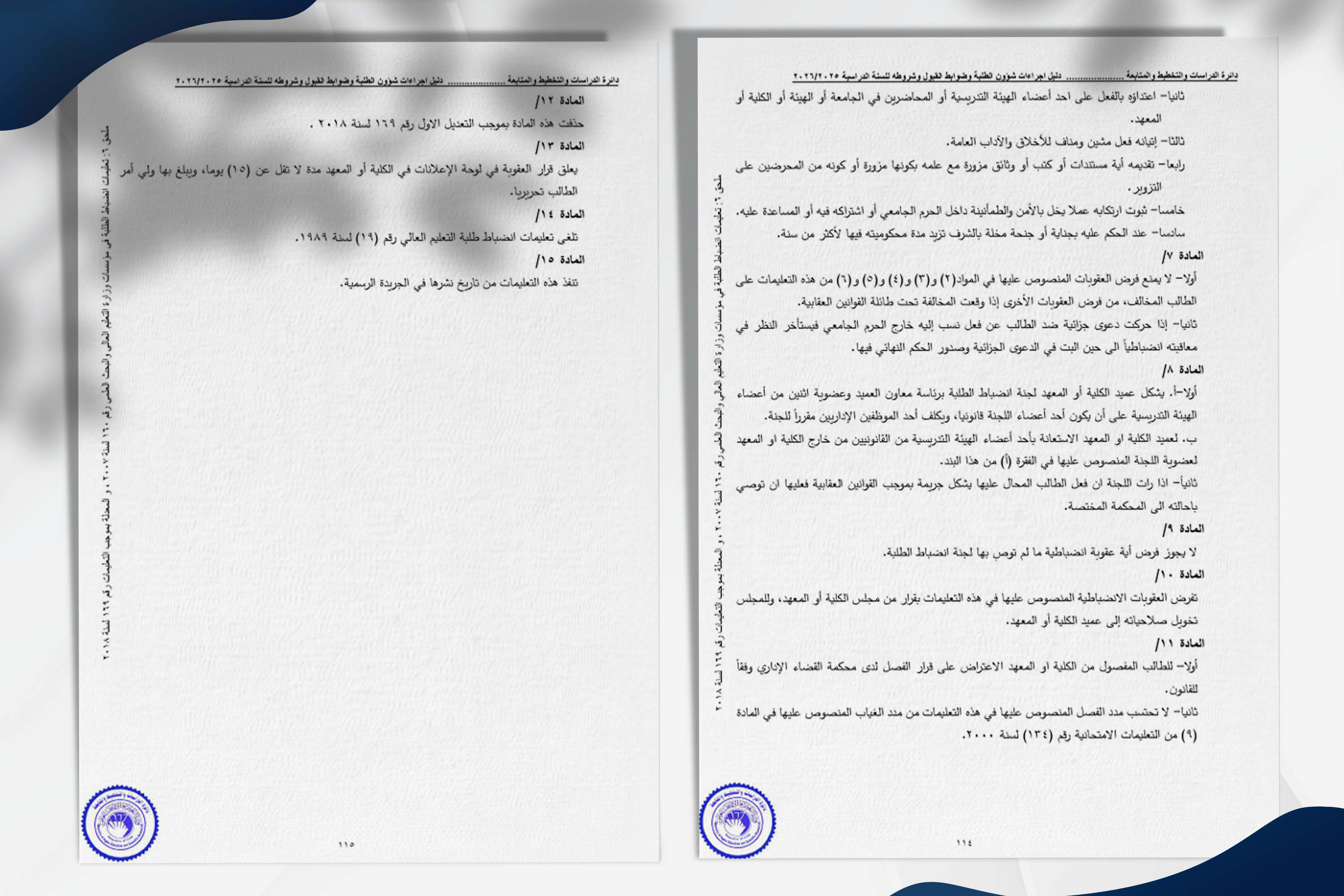 تعليمات انضباط الطلبة في مؤسسات وزارة التعليم العالي والبحث العلمي