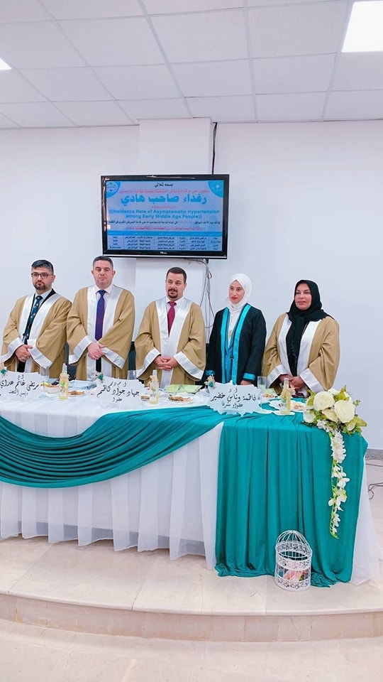 ترأس الاستاذ الدكتور مرتضى غانم الجبوري عميد كلية التمريض في جامعة وارث الانبياء (عليه السلام) لجنة مناقشة رسالة ماجستير في كلية التمريض جامعة الكوفه حيث تناولت رسالة الماجستير معدلات حدوث ارتفاع ضعط الدم الصامت لدى الاشخاص في منتصف العمر المبكر في مستشفيات مدينة الحلة.