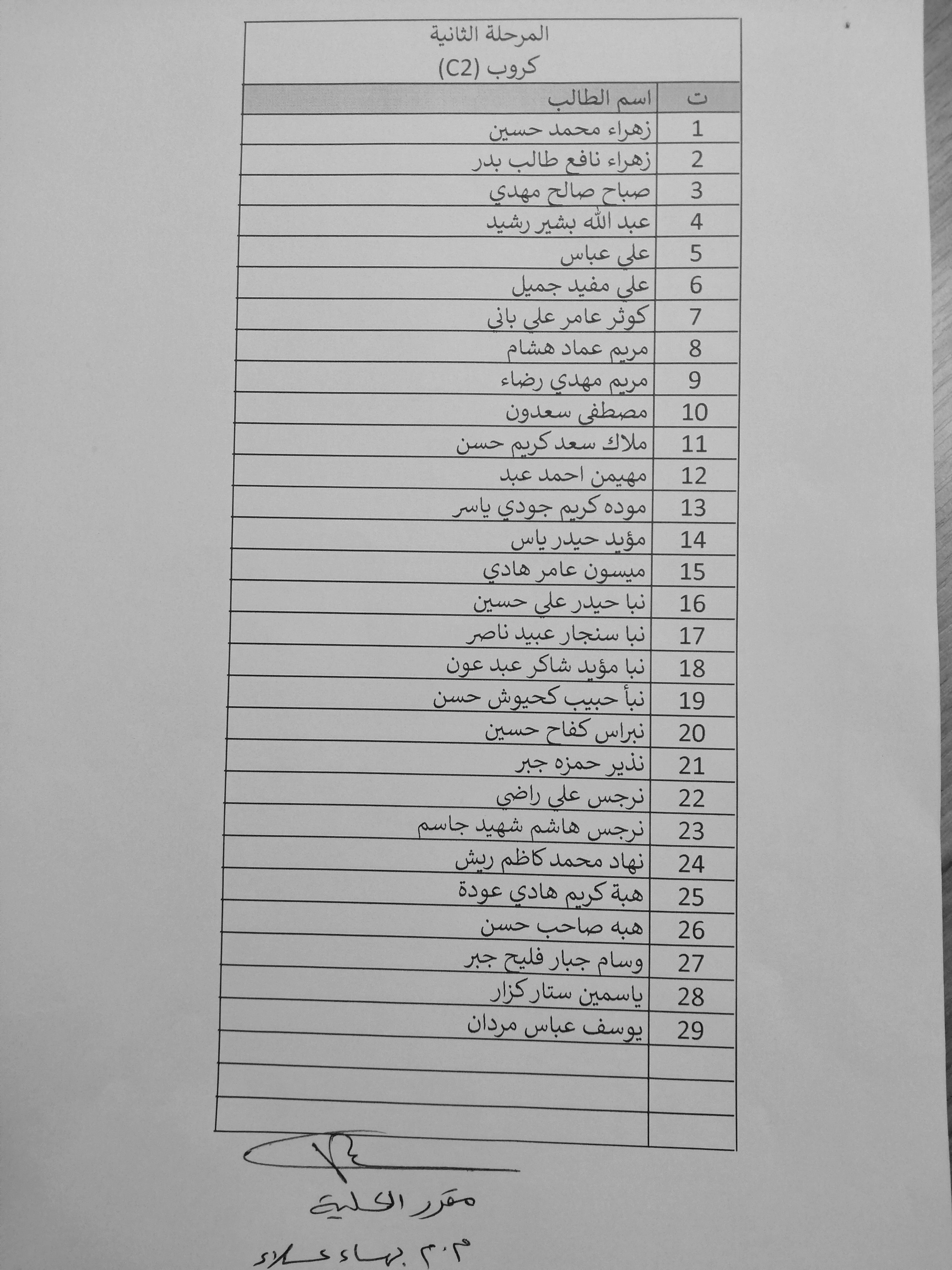 على الطلبة الاعزاء من المرحلة الأولى والثانية مراجعة عمادة الكلية لاستلام نتائج الدور الثاني للعام الدراسي ٢٠١٩/٢٠١٨.