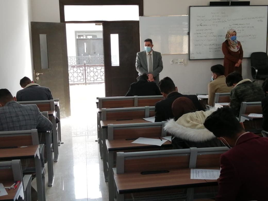 تفقدت عمادة كلية التمريض اجراء الامتحانات االفصلية للمواد العملية في كلية التمريض اذ شرعت كلية التمريض في جامعة وارث الانبياء ع اليوم الاثنين الموافق 25/ 1/ 2021 م، في إجراء الامتحانات الفصلية، وسط التشديد بتطبيق الإجراءات الاحترازية الموصي بها من قبل خلية الازمة لمكافحة وباء كورونـا، كالتباعد، والالتزام بارتداء الكمامات، وتعقيم الايدي.