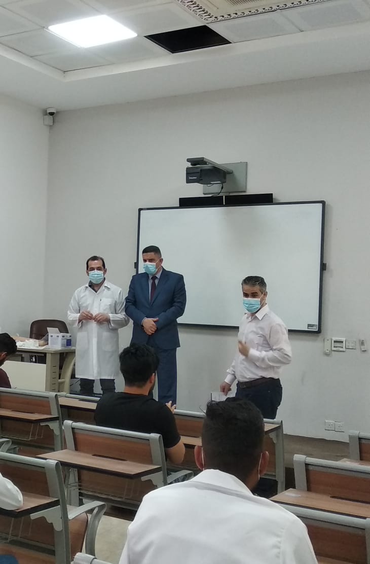 عميد كلية التمريض في جامعة وارث الانبياء الاستاذ المساعد الدكتور مرتضى غانم عداي يتفقد عملية سير اداء التدريب العملي للمرحلة الرابعة في مادة تمريض الحالات الحرجة