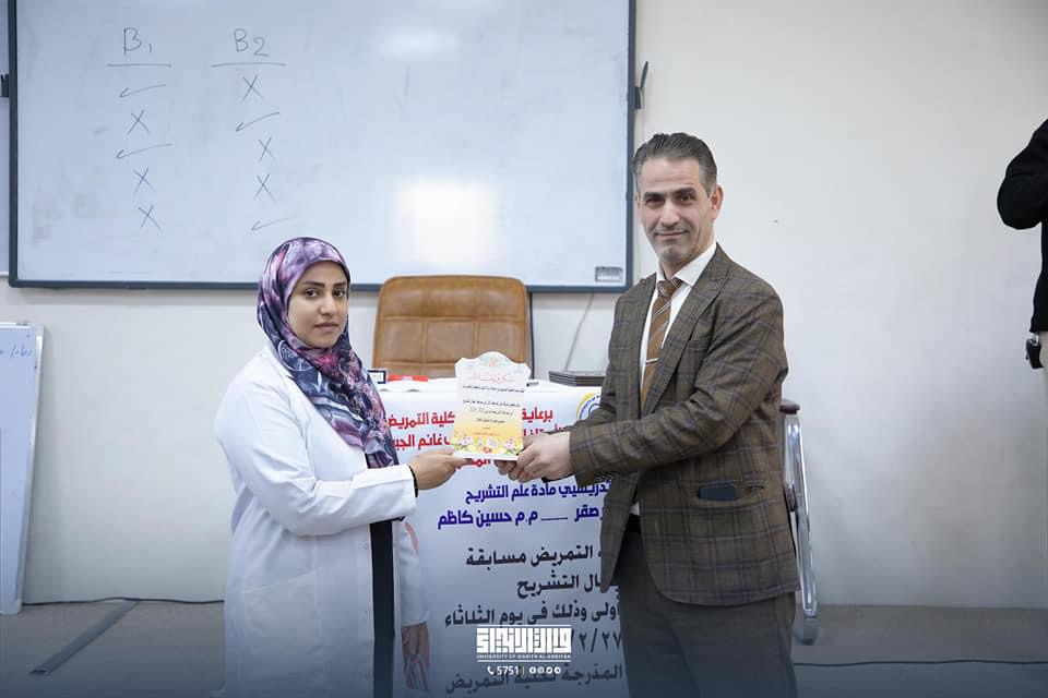برعاية عميد الكلية الاستاذ الدكتور مرتضى الجبوري، والسيد معاون العميد الاستاذ المساعد الدكتور اقامت كلية التمريض في جامعة وارث الانبياء(عليه السلام) مسابقتها الاولى لطلبة المرحلة الاولى بعنوان (أبطال التشريح)