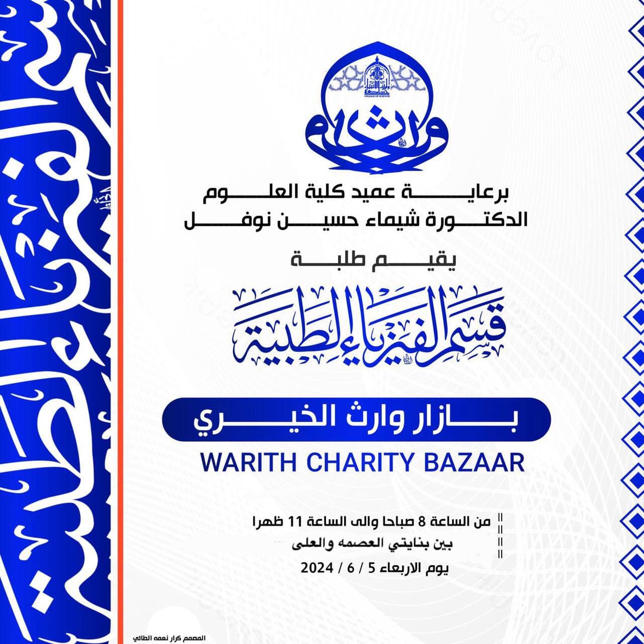 بازار وارث الخيري برعاية السيد عميد كلية العلوم أ.م.د شيماء حسين نوفل
