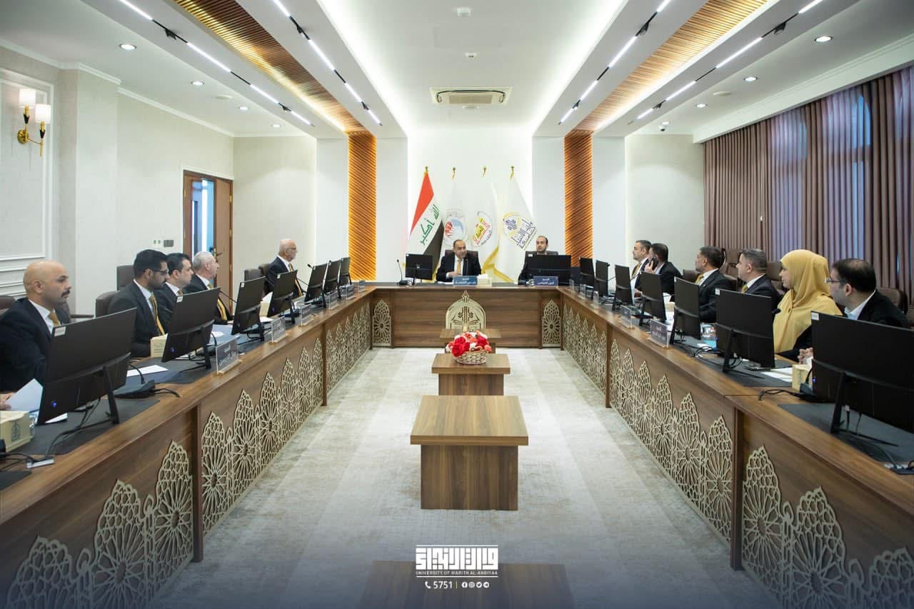 ترأس الأستاذ الدكتور إبراهيم الحياوي، رئيس جامعة وارث الأنبياء (عليه السلام)، الجلسة الاعتيادية لمجلس الجامعة، بحضور مساعدي رئيس الجامعة للشؤون الإدارية والعلمية، بالإضافة إلى عمداء الكليات.