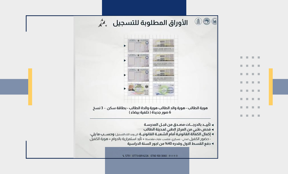 فريق التسجيل متواجد طوال أيام الأسبوع من الساعة 8 صباحًا حتى المساء. للاستفسارات، يُرجى الاتصال على الأرقام التالية: