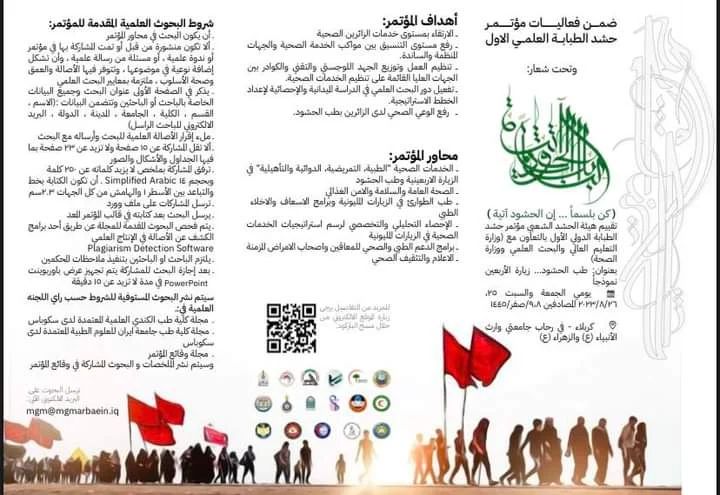 يذكر ان (مؤتمر حشد الطبابة الدولي الاول)، وتحت شعار "طب الحشود... زيارة الأربعين انموذجاً"