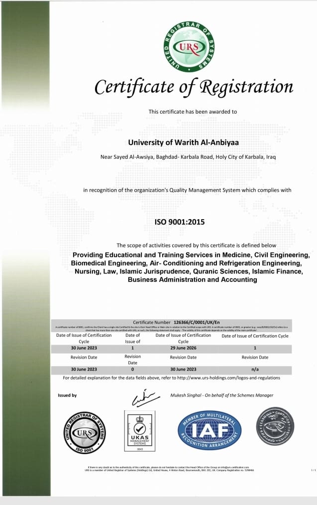 حصدت جامعة وارث الأنبياء على ثلاث اعتمادات دولية مهمة في ادارة الجودة والبيئة والسلامة المهنية
