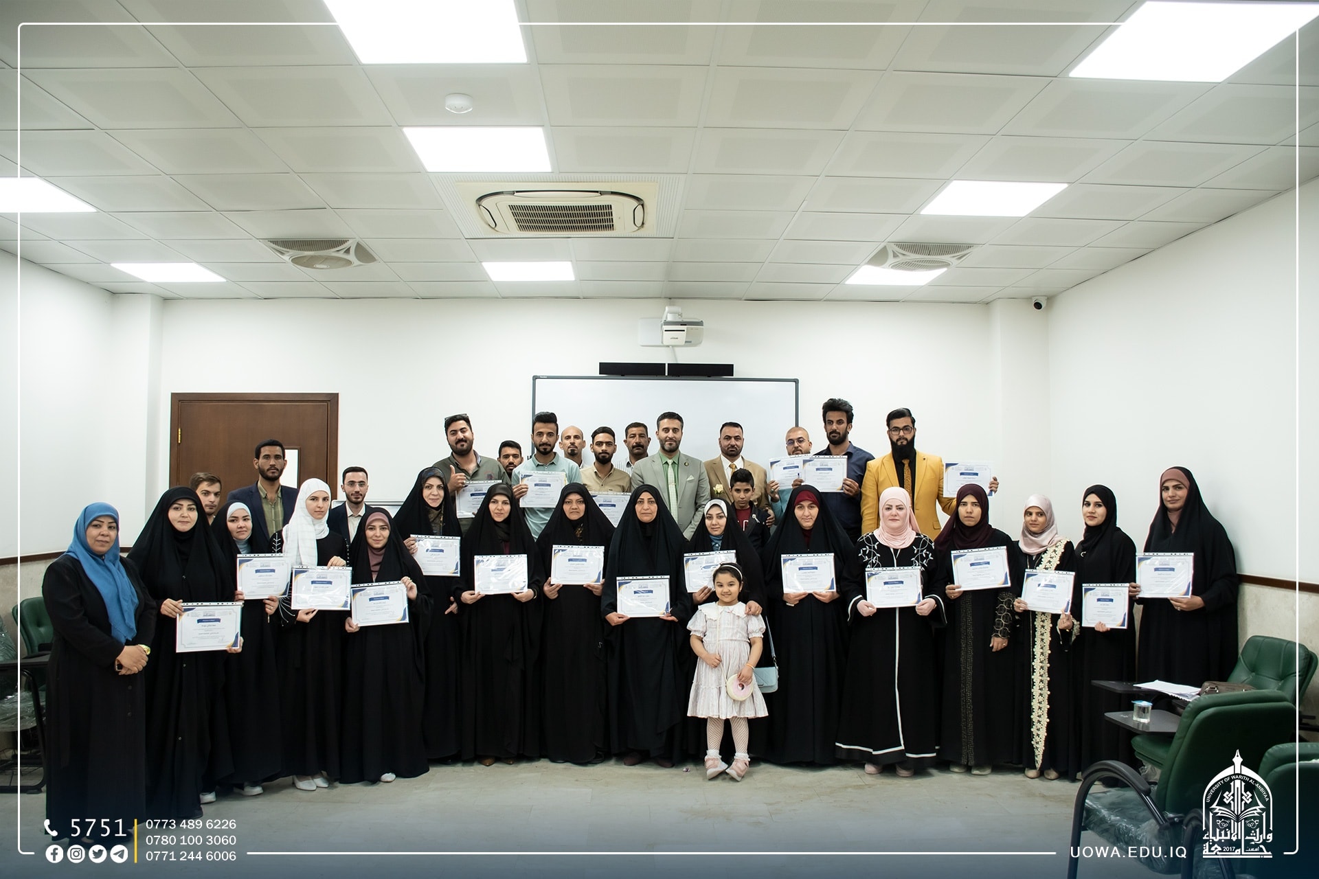 وفي نهاية الكورس تم تقديم شهادات شكر وتقدير على الطلبة الذين تطوعوا لخدمة الزوار خلال زيارة العاشر من المحرم.