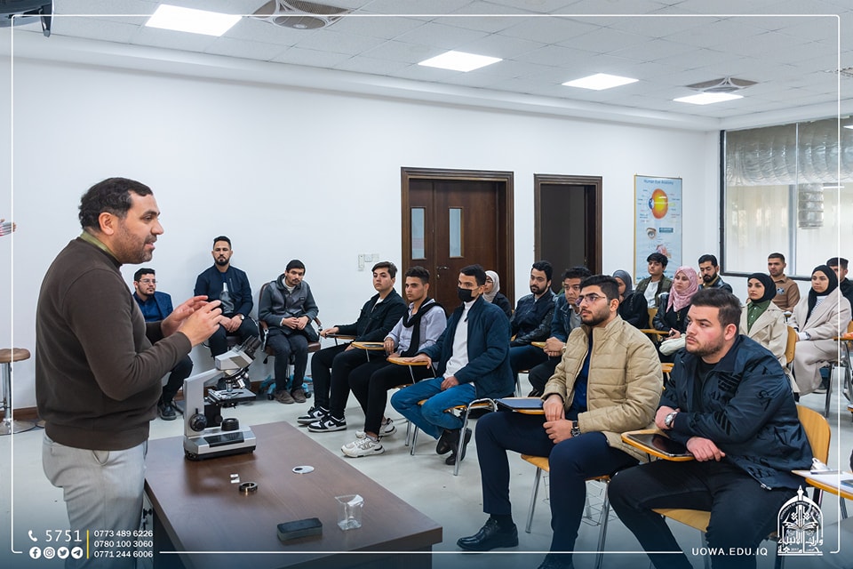ألقاها التدريسي. م.م هاشم محمد الاعرجي لمدة ثلاثة ايام وقد تناولت الدورة ثلاثة محاور، المحور الاول تناول الاجزاء الرئيسية للمجهر الضوئي، والثاني تضمن مبدأ العمل من ناحية مصدر الضوء، أما المحور الثالث فتناول اساس عمل المجهر الضوئي من ناحية قوة التكبير والايضاح.