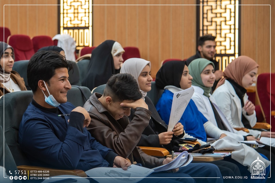 حلقة نقاشية في جامعة وارث الانبياء(عليه السلام) اقامها قسم الشؤون العلمية / وحدة تمكين المراة تحت عنوان(التغيير بين بيئة الاعدادية والحياة الجامعية لطلاب المرحلة الاولى)، قدمها المدرس المساعد عبد الامير صبار.