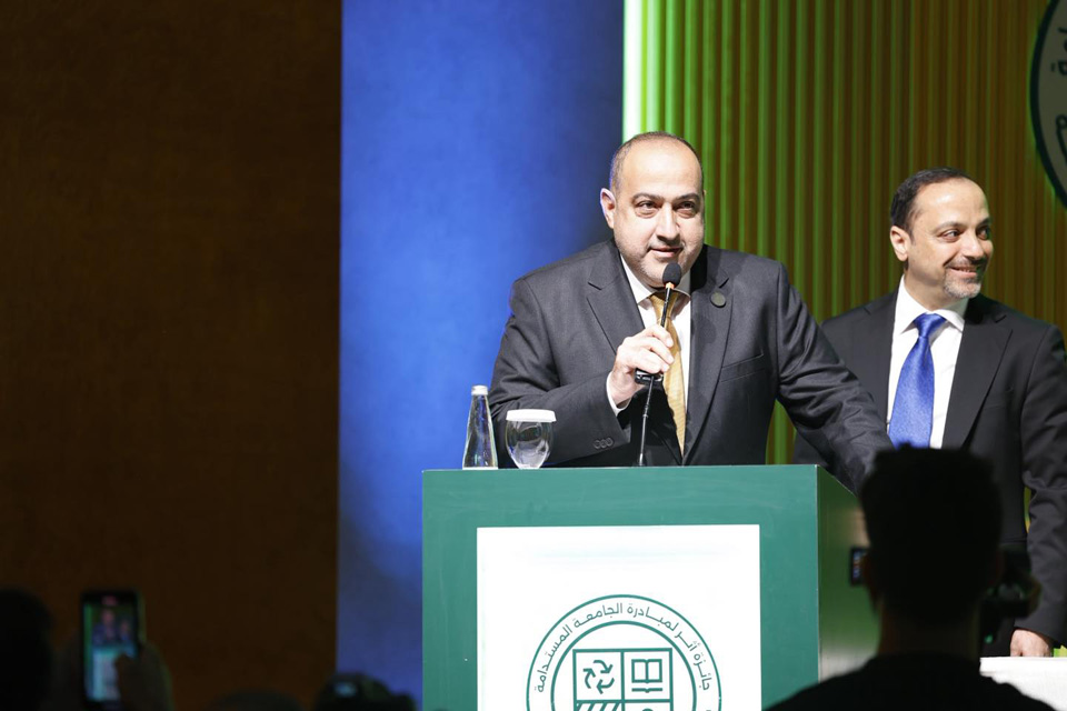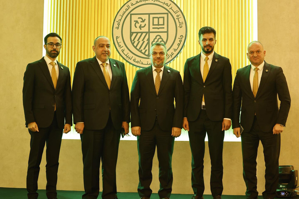 The award was received by the University President, Professor Dr. Ibrahim Saeed Al-Hiyyawi, during the official ceremony attended by the Minister of Environment, Dr. Hallo Al-Askari, and the Undersecretary of the Ministry of Higher Education and Scientific Research, Dr. Haider Abdul-Zahid, along with a distinguished group of academics, researchers, environmental and sustainable development experts, and presidents of Iraqi universities.