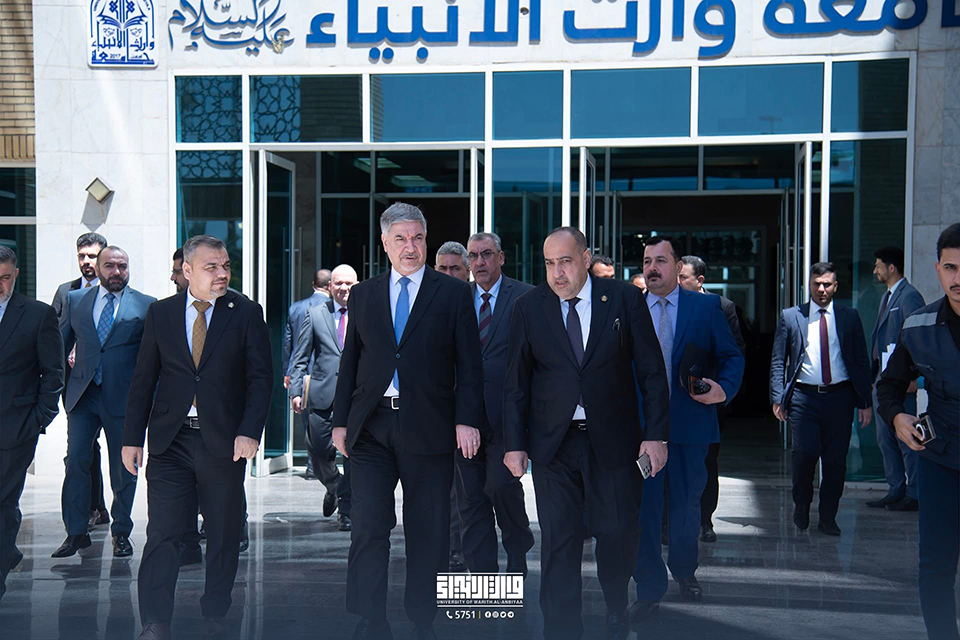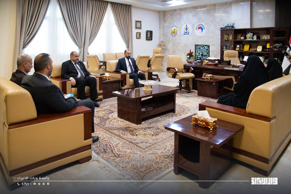 As part of its efforts to strengthen institutional cooperation with state institutions, the Presidency of the University of Warith Al-Anbiyaa received a high-level delegation from the Iraqi Ministry of Foreign Affairs, headed by the Deputy Minister for Political Planning, Dr. Hisham Al-Alawi. The delegation was welcomed by the University President, Professor Dr. Ibrahim Saeed Al-Hayyawi, accompanied by the Vice President for Scientific Affairs, Professor Dr. Waqed Al-Moussawi, and members of the University Council.