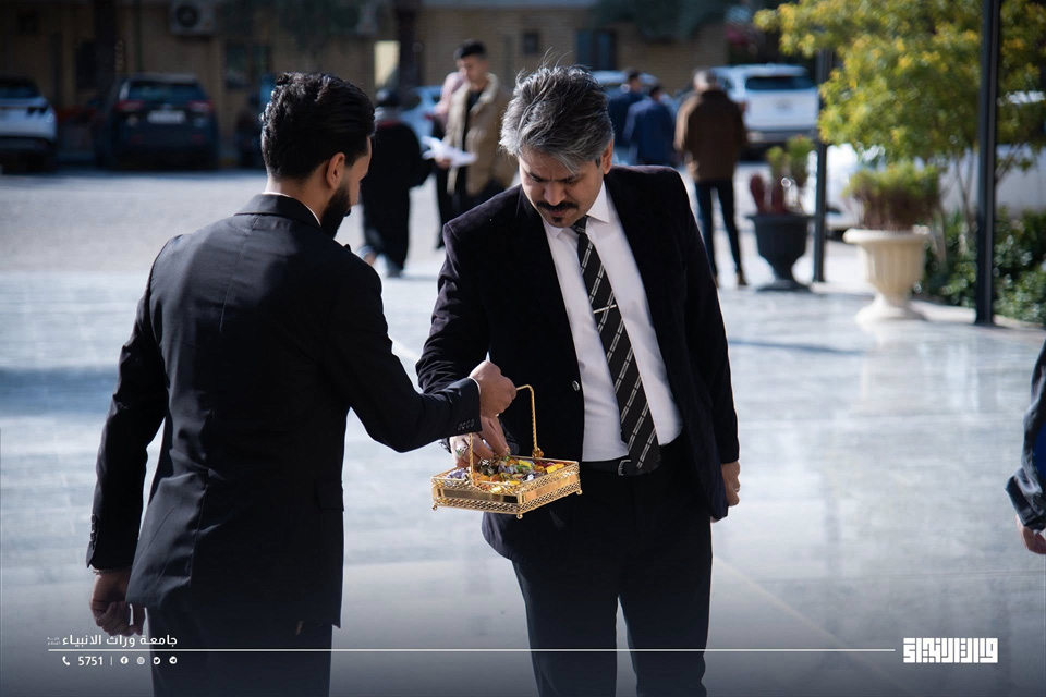On the occasion of the blessed birth anniversary of Amir Al-Mu’minin Imam Ali ibn Abi Talib (peace be upon him), students of Warith Al-Anbiyaa University (AS) marked the occasion through a meaningful initiative that included distributing sweets and sharing selected quotes and highlights from his noble life across the university campus, aiming to promote his lofty values among the academic community.