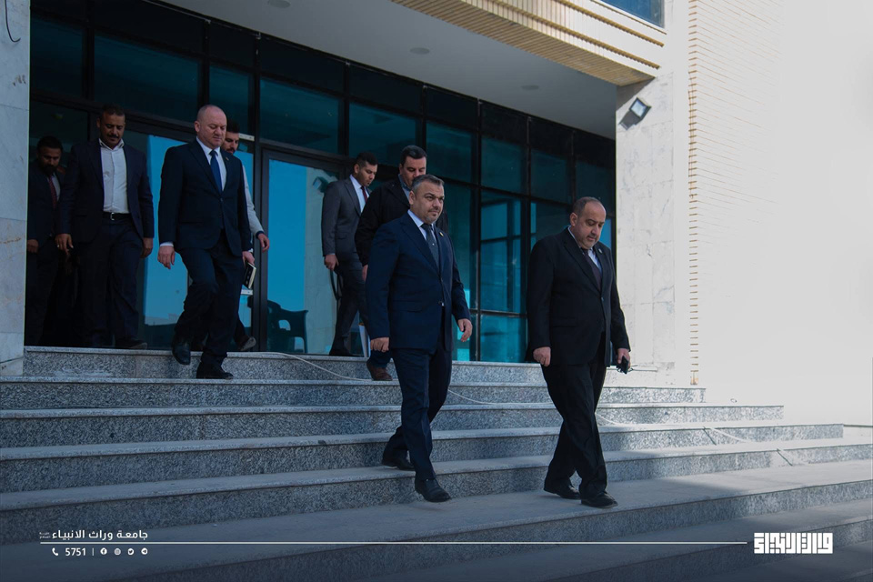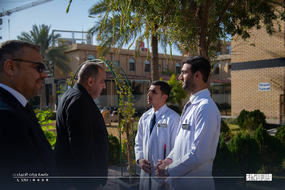 The President of Warith Al-Anbiyaa University, Professor Dr Ibrahim Saeed Al-Hayyawi, accompanied by the Assistant President for Academic Affairs, Professor Dr Waqed Al-Moussawi, conducted a field visit across the University campus to review the progress of the educational process and the academic environment experienced by students. During the visit, he listened to students’ observations and identified their needs.
