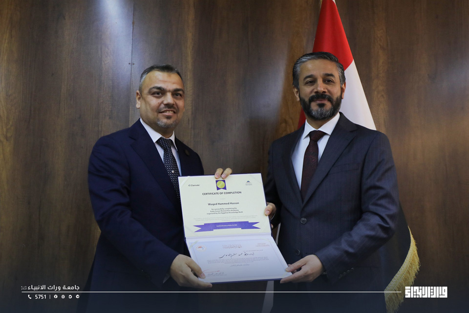 The Ministry of Higher Education and Scientific Research honoured the Dean of the College of Islamic Sciences at Warith Al-Anbiyaa University, Dr Talal Faeq Al-Kamali, following the College’s achievement of first place among Colleges of Islamic Sciences in Iraq in the Iraqi National University Ranking, which included both public and private universities.