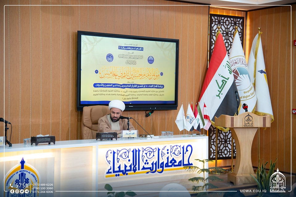 The Holy Quran Center at the Holy Shrine of Imam Hussein, in collaboration with the College of Islamic Sciences at the University of Warith Al-Anbiyaa (peace be upon him), and the Colleges of Islamic Sciences at the universities of Baghdad, Babel, and Kufa, organized the "Fifth International Conference of Imam Hussein (peace be upon him)."